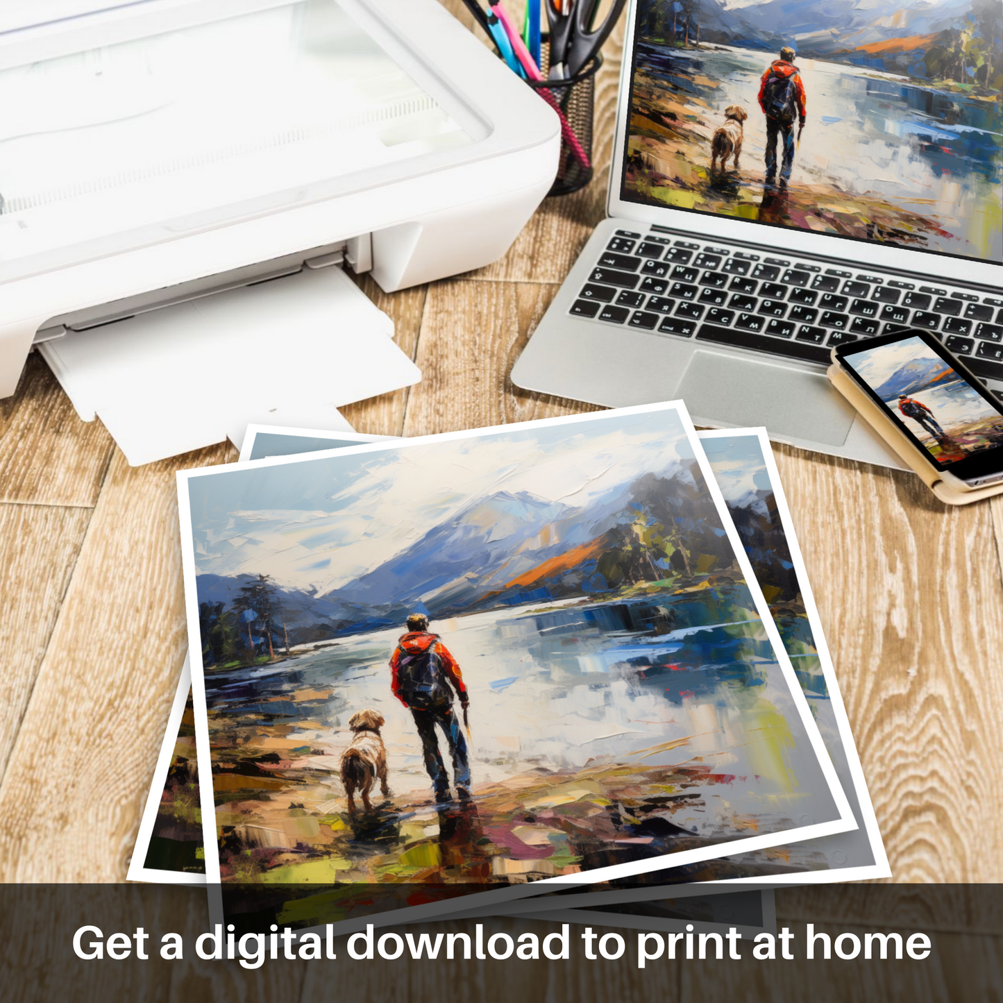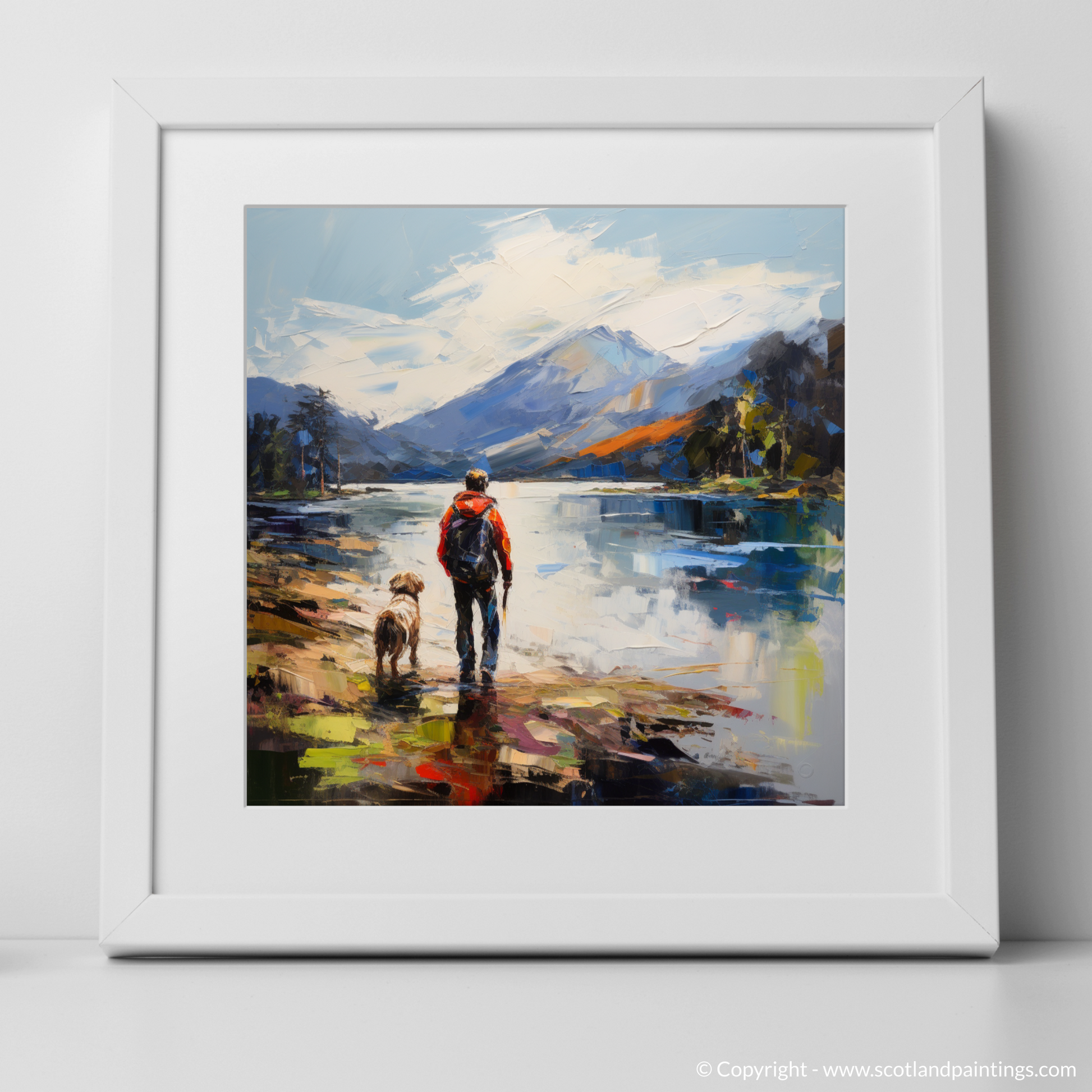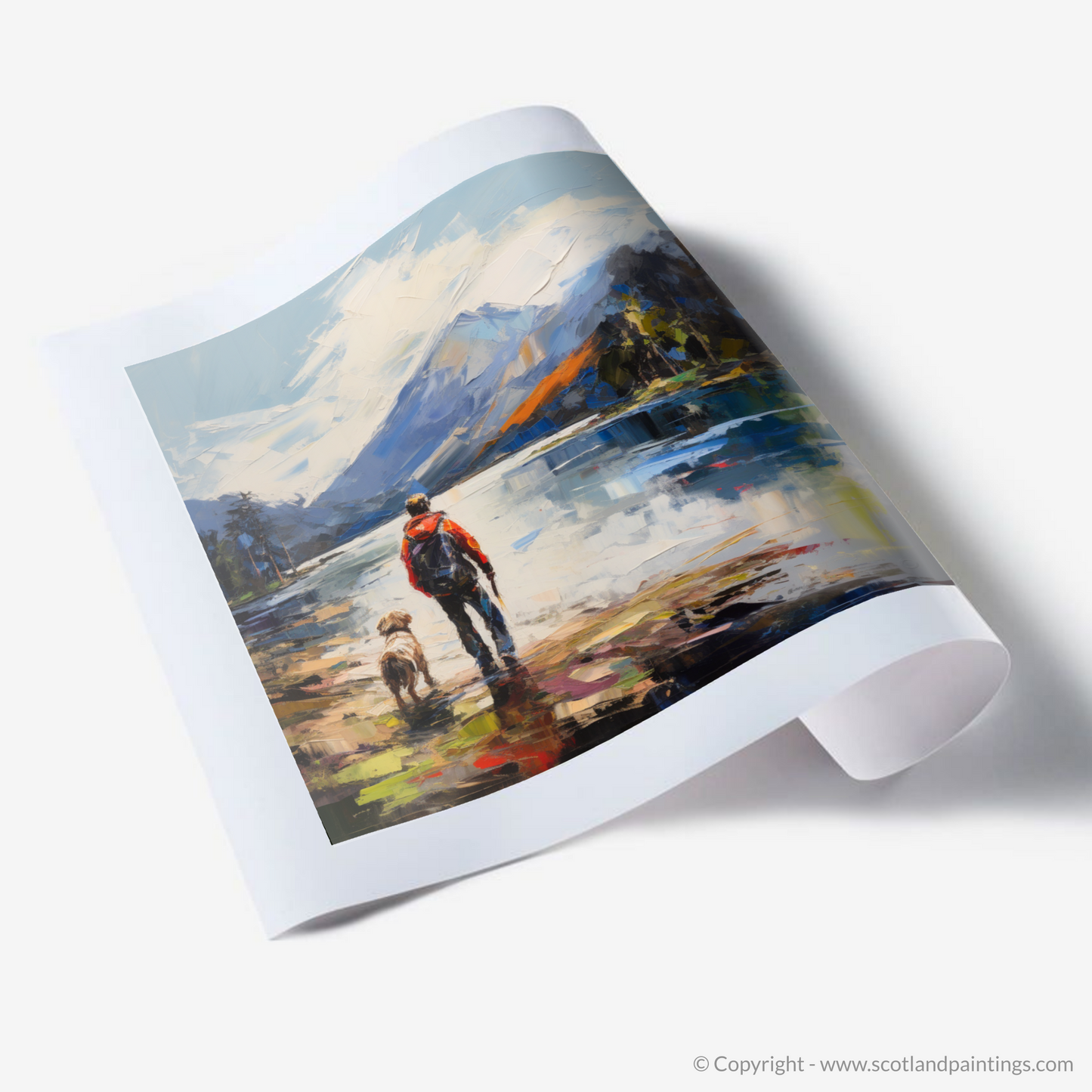 This print from the 'Loch Lomond' collection is an ideal treasure for those who cherish the Scottish outdoors, the bond between humans and dogs, or the allure of expressionistic art. It is a moment forever held in time, offering the viewer a chance to experience the enchanting allure of the Scottish landscape from the comfort of their own space.