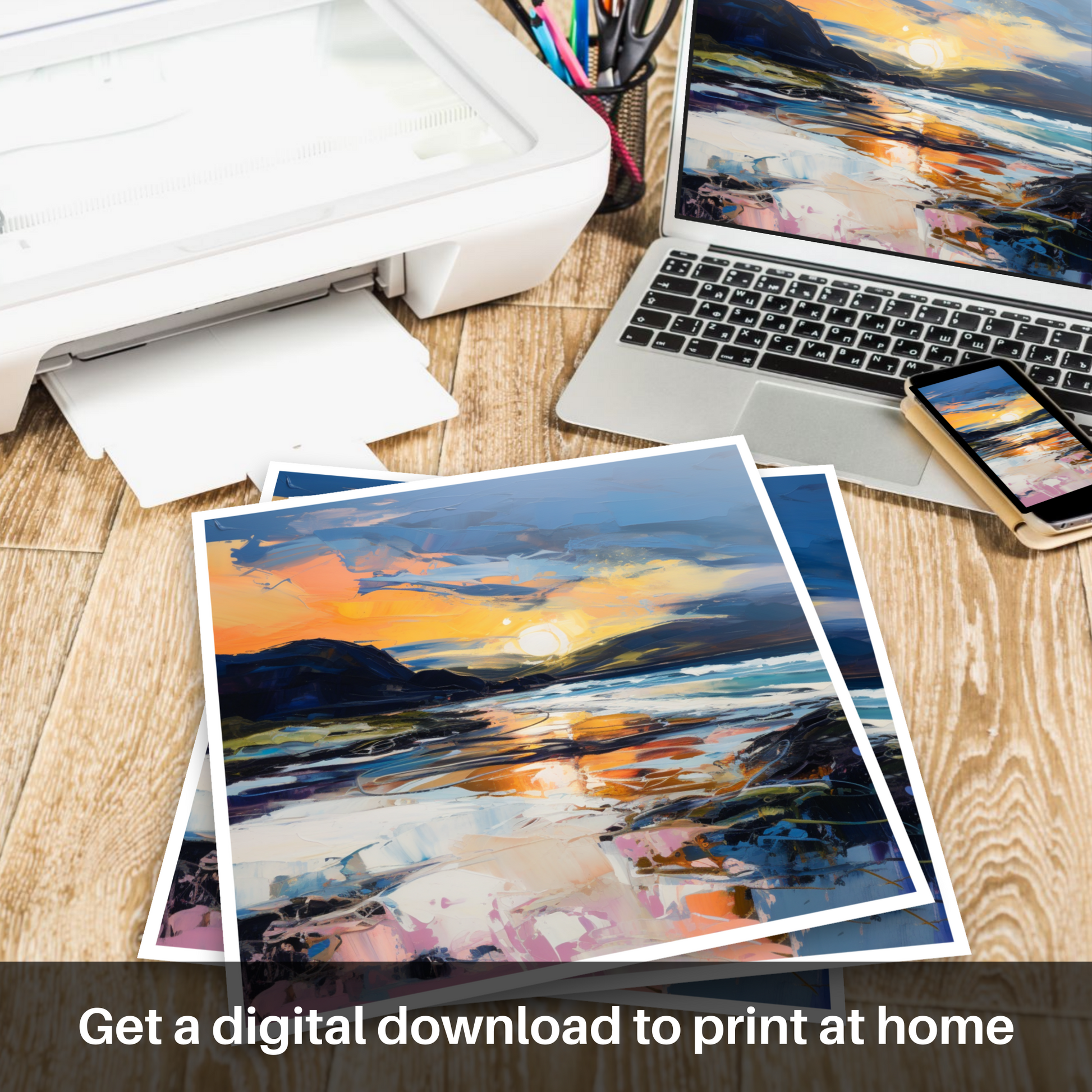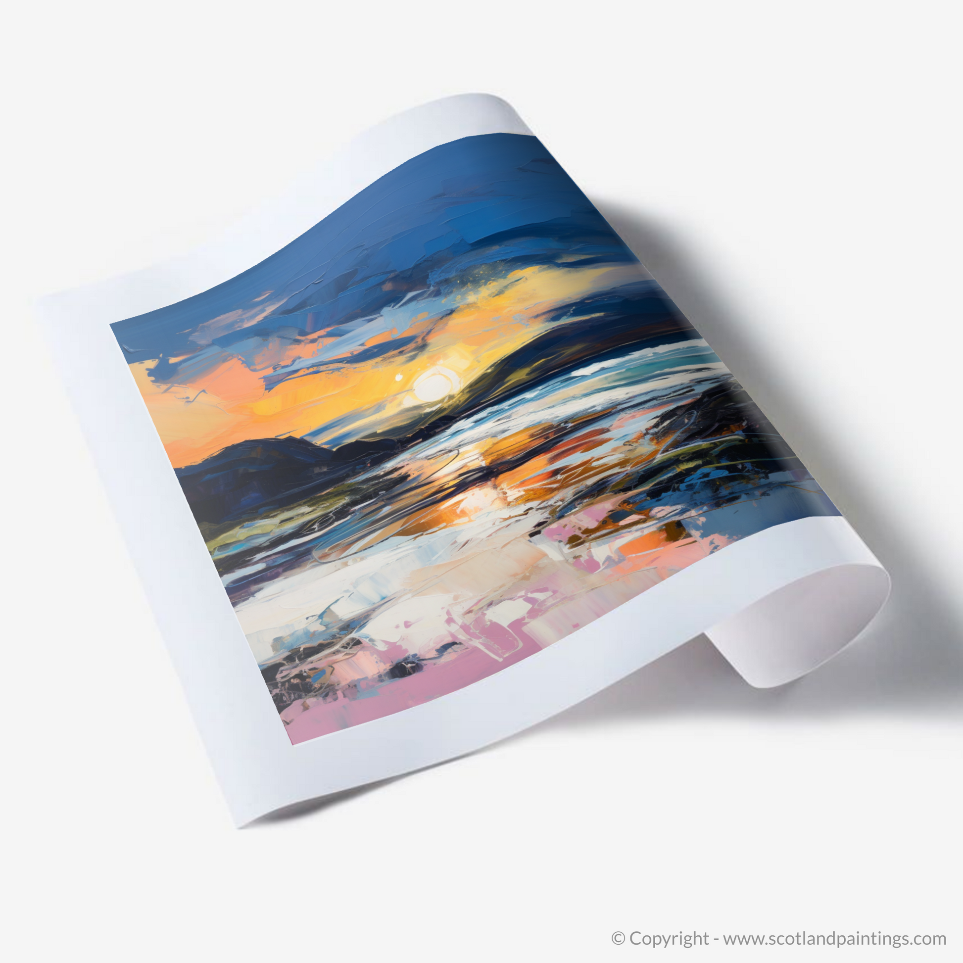 Capturing the ephemeral grace of Scarista Beach at the cusp of dusk, this evocative print is a triumphant homage to the raw beauty of the Scottish coastline. The piece is imbued with the emotive power characteristic of Expressionism, using vivid, swirling colours to convey the intense sensory experience of the beach as daylight wanes.