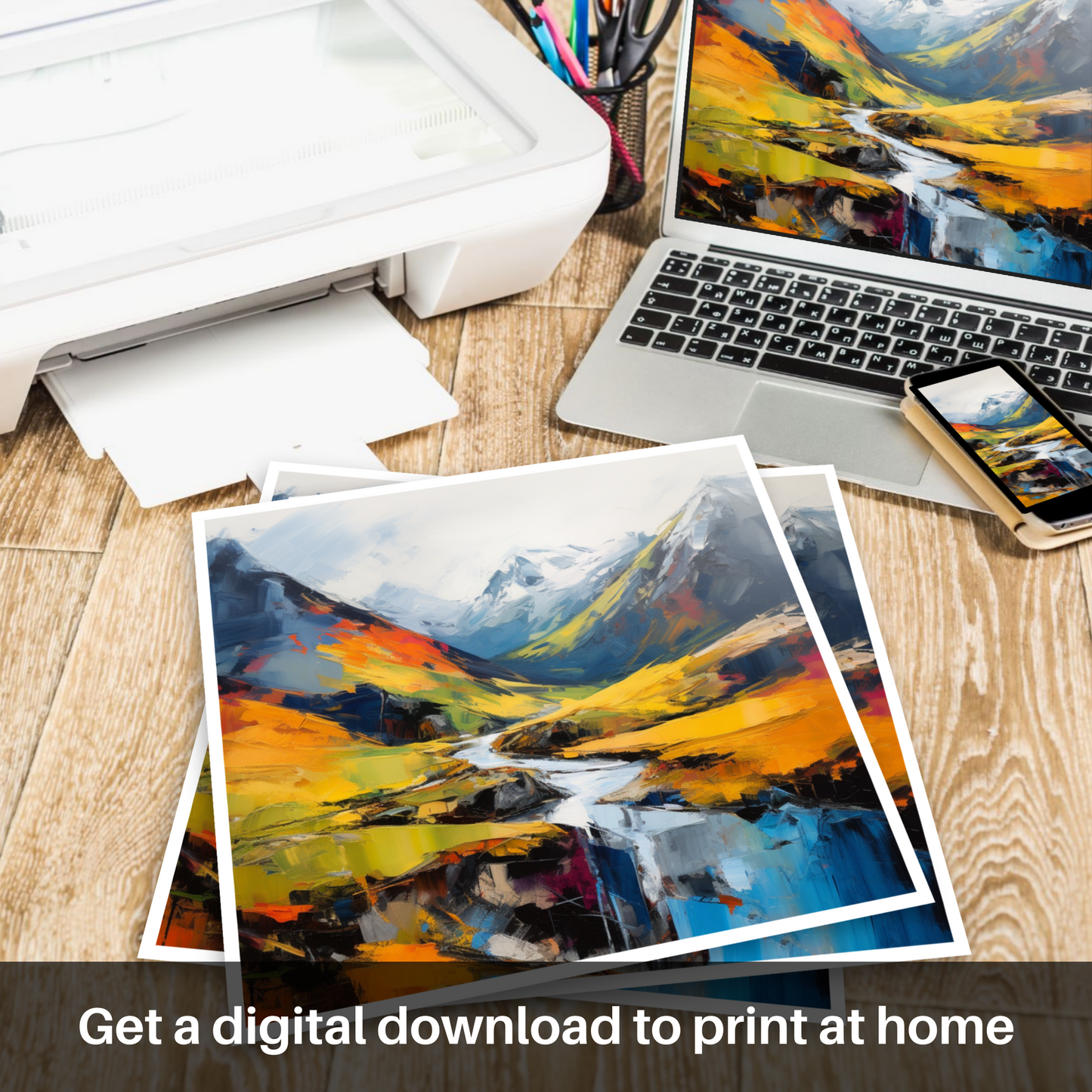 Capturing the rugged beauty of the Scottish Highlands, this evocative print invites you into a world where nature's drama unfolds with vibrant intensity. Inspired by the majestic Meall nan Tarmachan, the composition is a symphony of bold, swirling colours that bring the untamed landscape to life.