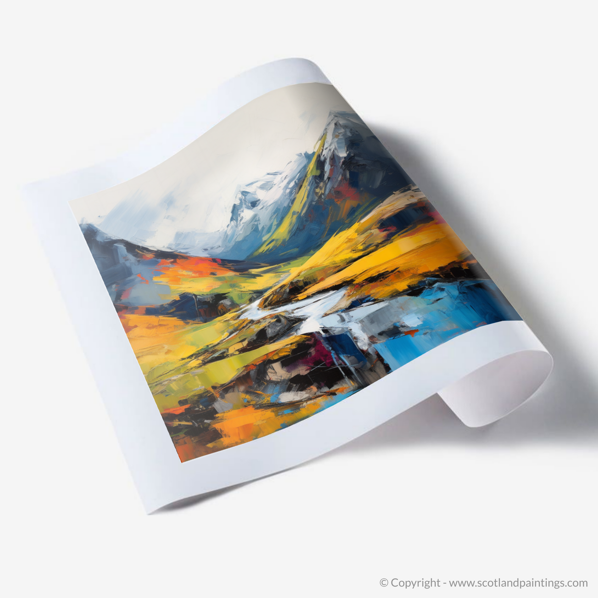 A piece for those who cherish the wild, untamed landscapes of Scotland, this print from our 'Scottish Munros' collection is a vibrant homage to the spirit of the Highlands, crafted in the emotional and passionate style of Expressionism. It is a heartfelt invitation to embrace the raw, elemental forces of nature and the profound beauty of Scotland's mountainous terrain.
