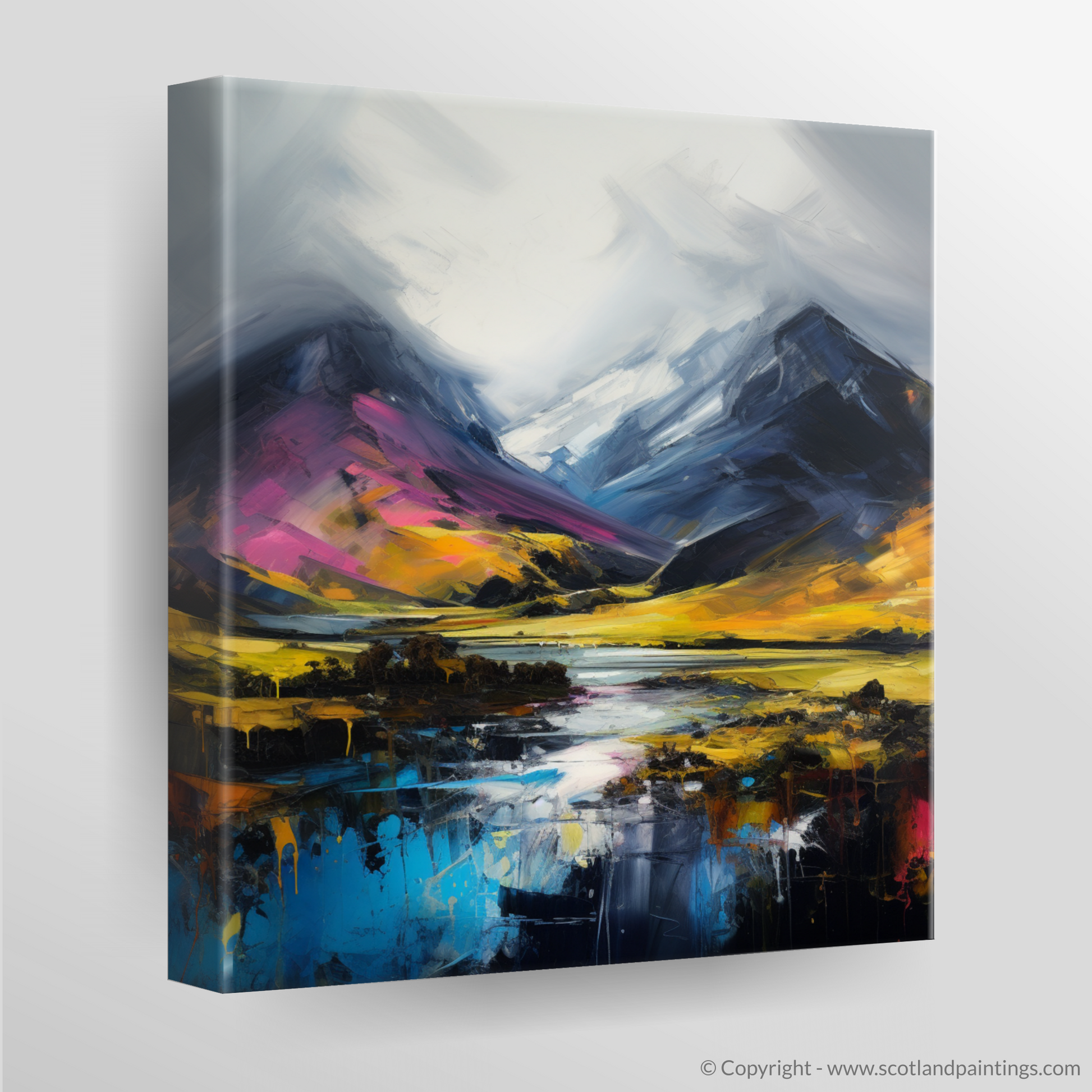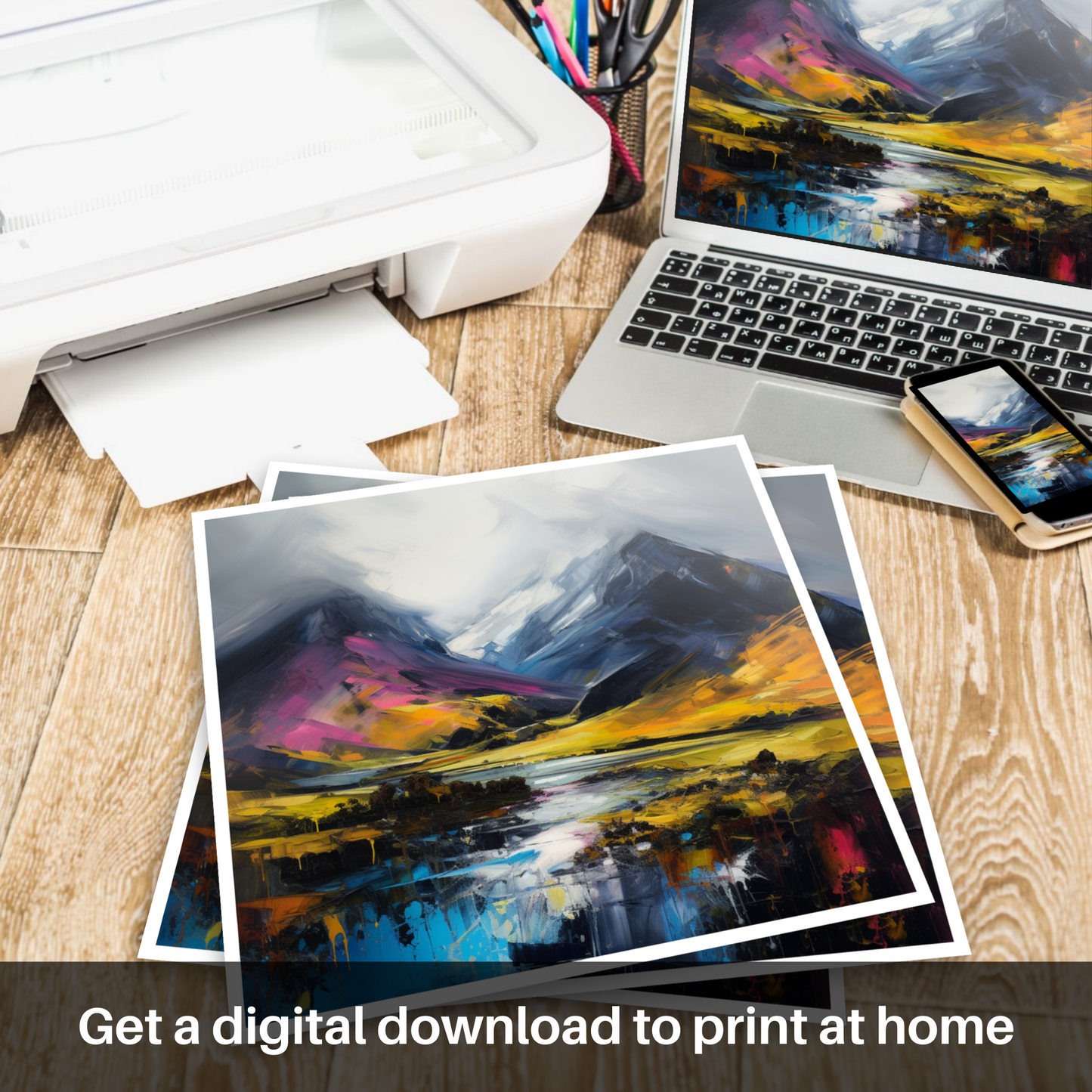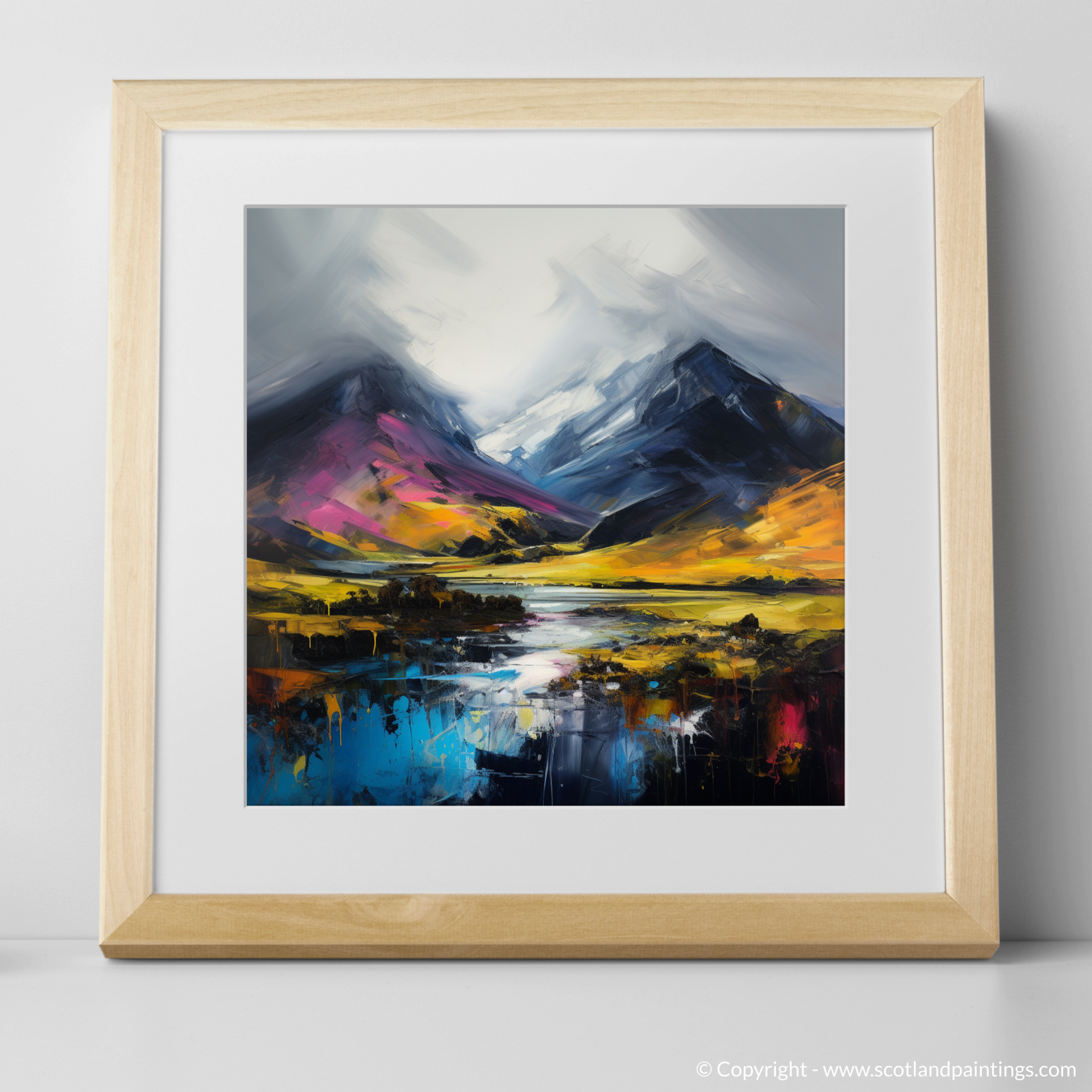 Captivate your senses with this stunning, Expressionist-inspired portrayal of Meall nan Tarmachan, part of our esteemed 'Scottish Munros' collection. This breathtaking print captures the raw and turbulent beauty of the Highlands with an explosion of colour and dynamic brushstrokes that convey the untamed spirit of Scotland's landscapes.