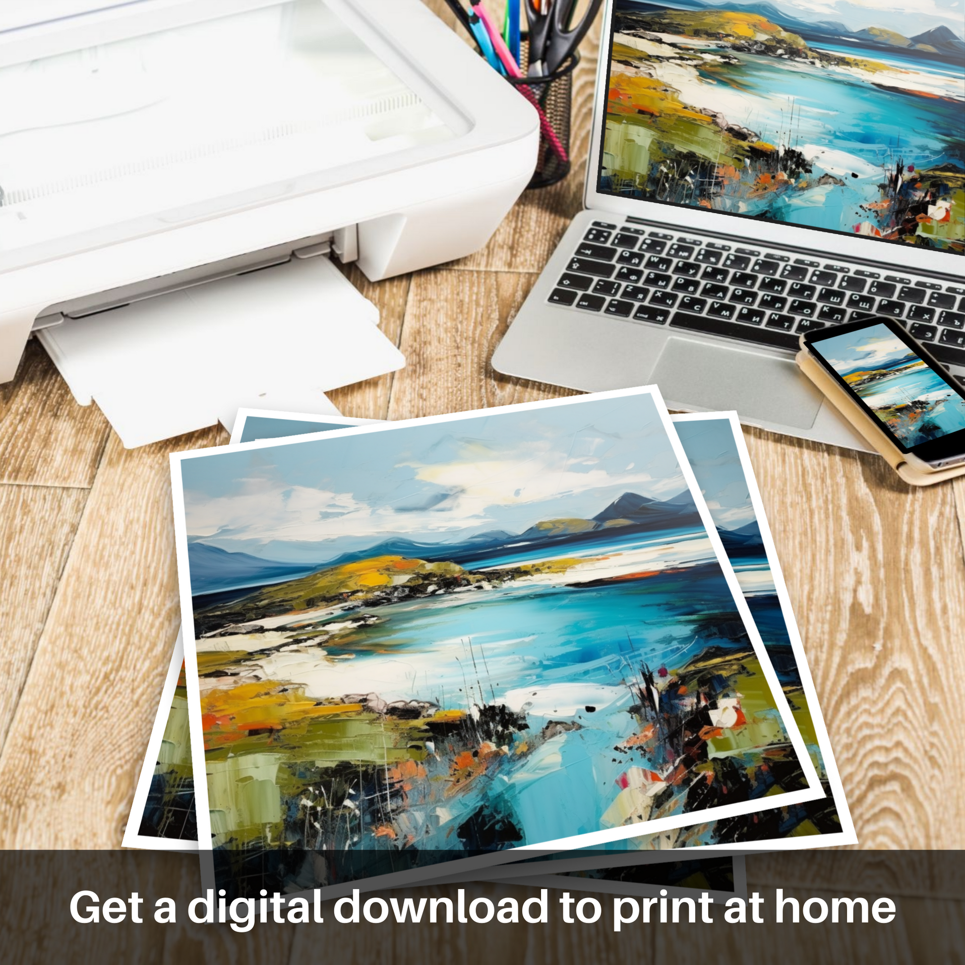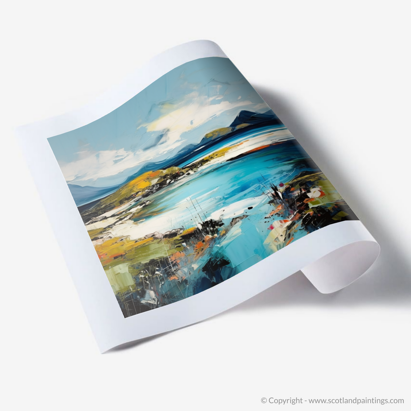 This captivating print transports you to the rugged charm of the Isle of Barra in the Outer Hebrides, brought to life through a vivid expressionist lens. The piece brims with dynamic brushstrokes and a bold palette, encapsulating the untamed beauty of this Scottish island with a burst of artistic flair.