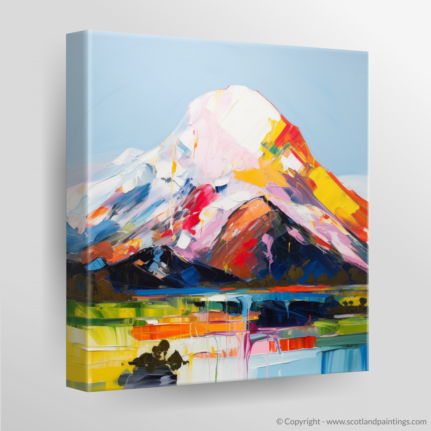 This piece is not just a portrayal of a formidable Munro but an emotional journey that invites contemplation and admiration for Scotland's natural grandeur. It is an offering to those who seek the beauty of the highlands and the exhilaration of its open spaces within their own home.