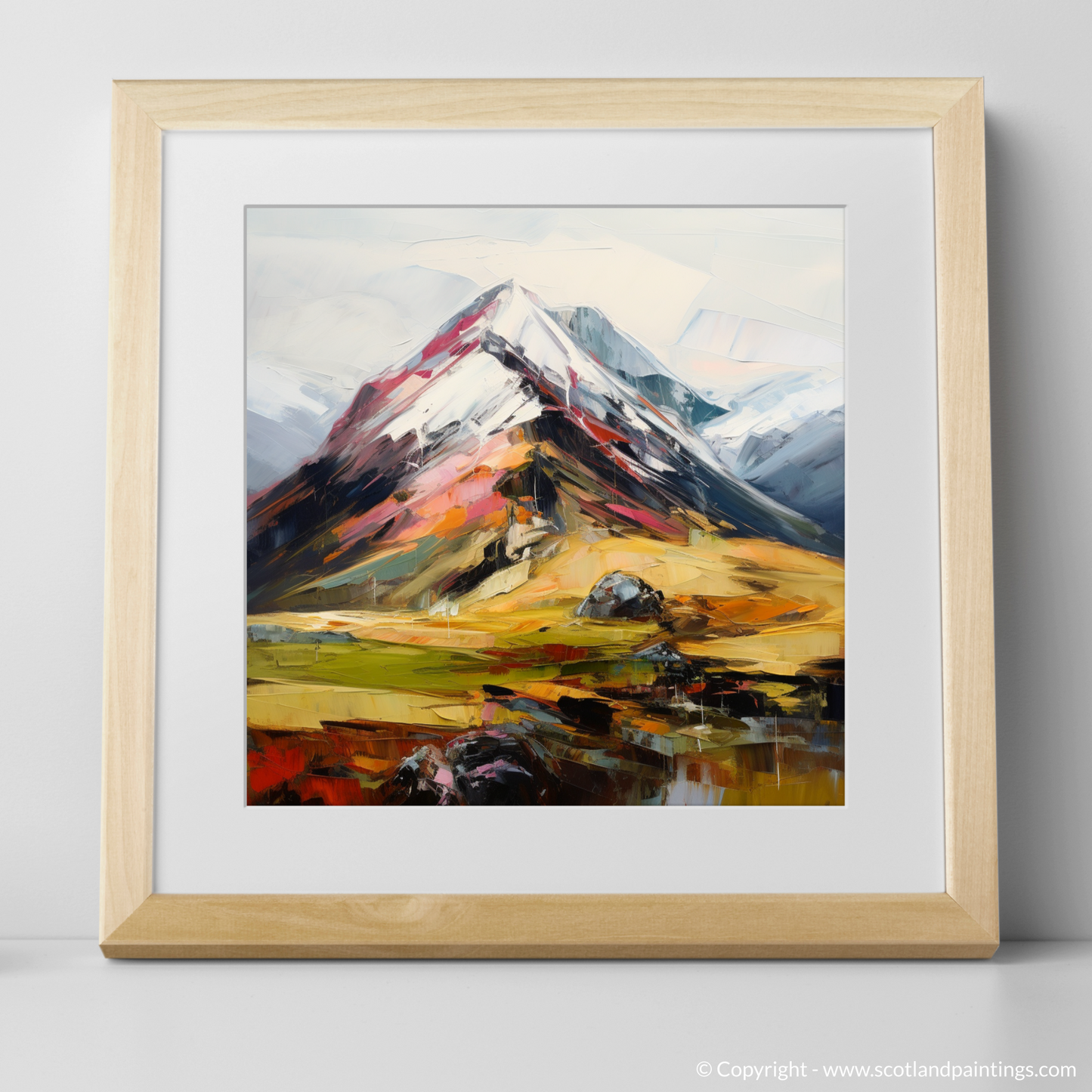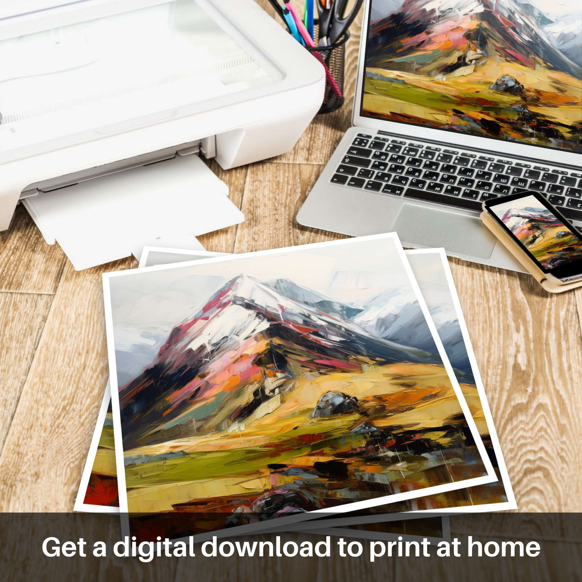 Capture the rugged beauty and sublime wilderness of the Scottish Highlands with this captivating print inspired by Meall Garbh, a distinguished peak within the Ben Lawers range. The piece is a dynamic expression of nature's grandeur, executed with a bold expressionist flair that vivifies the Scottish Munros through a vivid interplay of colour and form.
