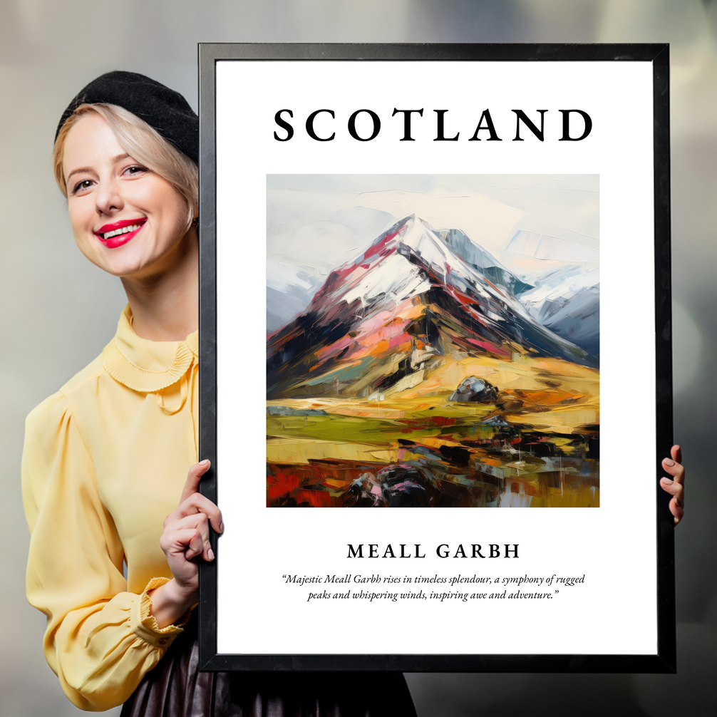 Bring the wild beauty of Scotland into your home with our stunning framed poster print featuring Meall Garbh. This expansive piece, measuring a generous 50cm x 70cm, is perfect for those who seek to fill their space with both grandeur and meaning without stretching the budget. Choose from three elegant frame options—black, white, or a natural wood-effect—to seamlessly blend with any décor while highlighting the artwork’s vibrancy.