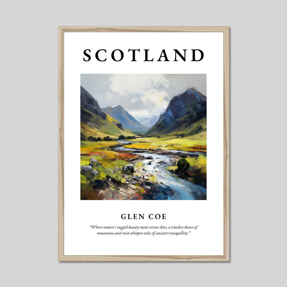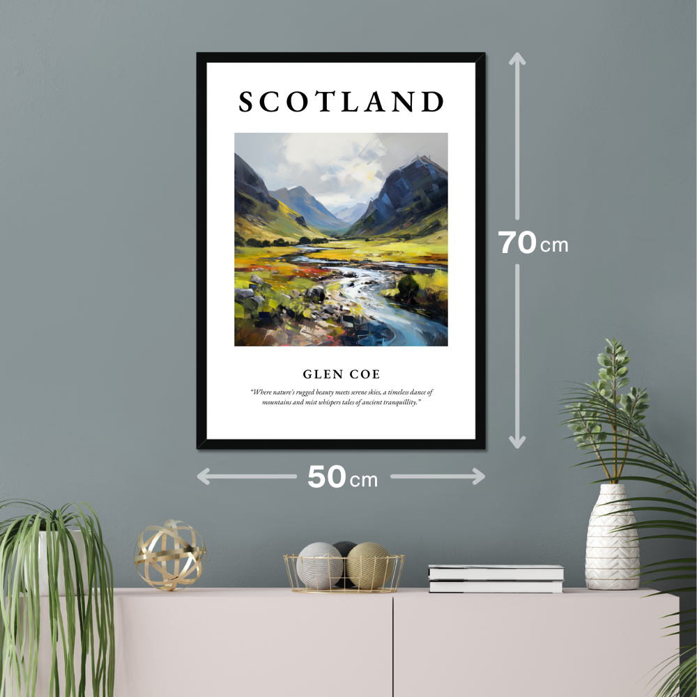 Transform your space with the beauty and majesty of Scotland through our striking framed poster print. Measuring an impressive 50cm x 70cm, this piece is designed to bring the awe-inspiring landscapes of Glen Coe into your home. Available in black, white, or natural wood-effect frames, it seamlessly complements any décor style.