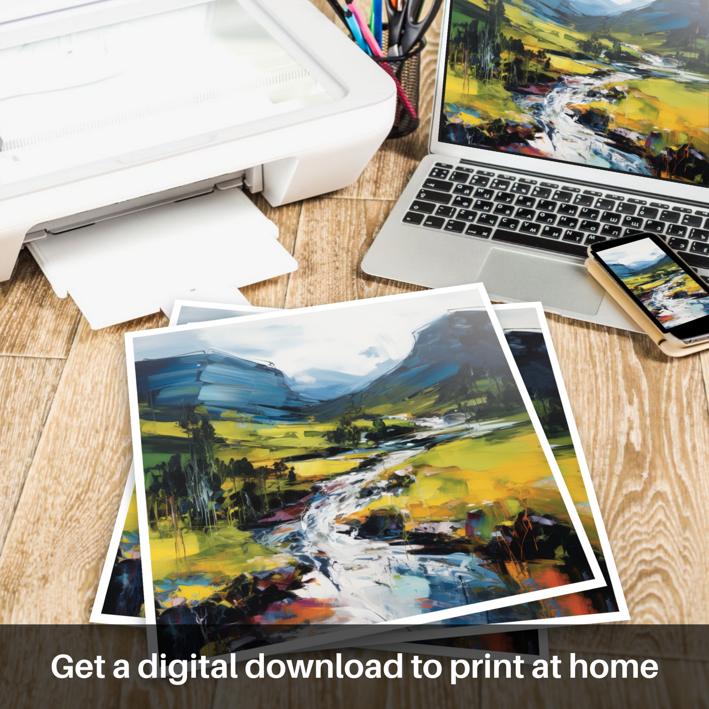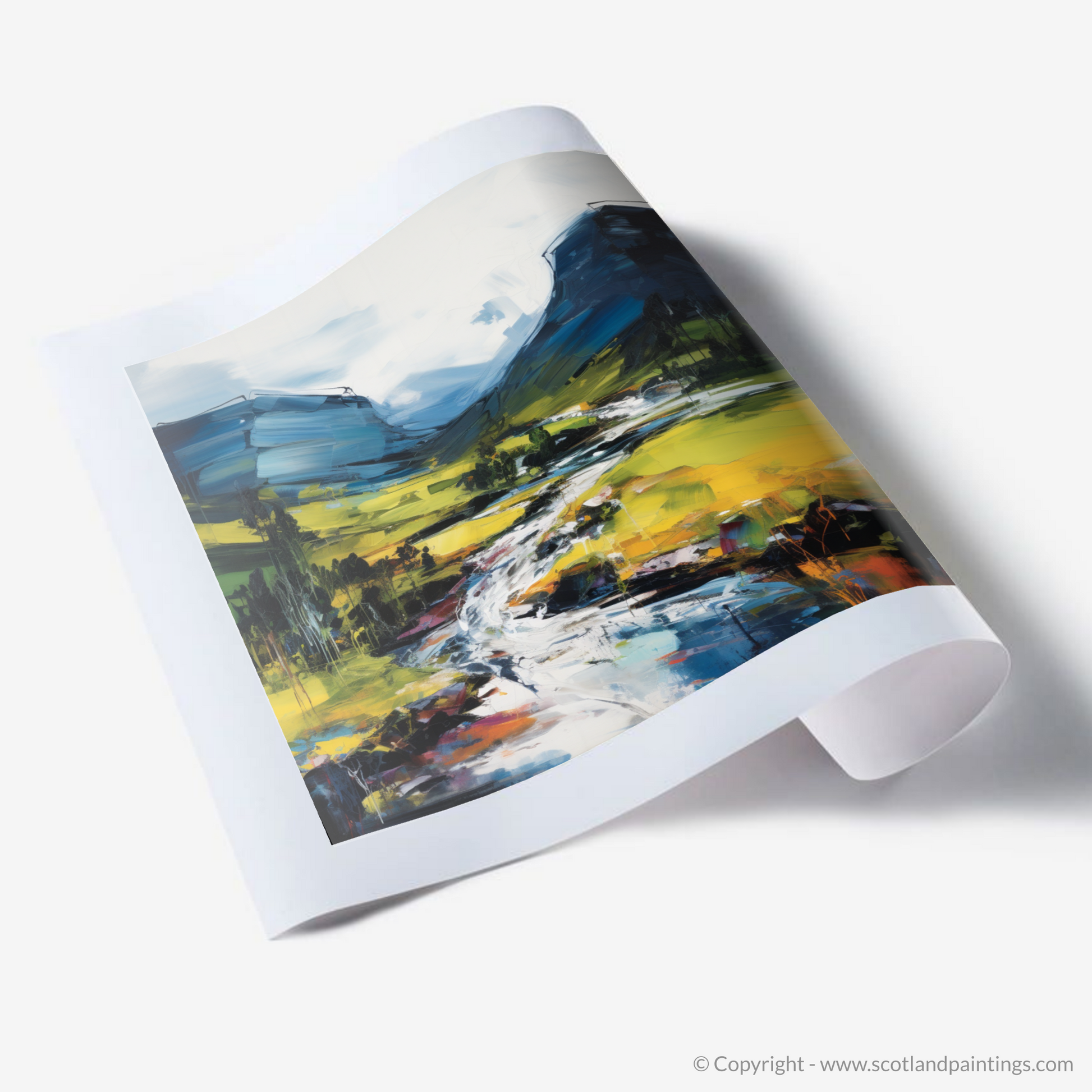 Capturing the emotion and movement of Glen Esk, this print is a testament to the transformative power of both nature and art. The piece balances the line between representation and abstraction, inviting viewers to experience the Scottish landscape through a lens that is both deeply personal and universally resonate. It makes for an evocative addition to any space that seeks to embrace the raw, untamed spirit of Scotland's natural beauty.