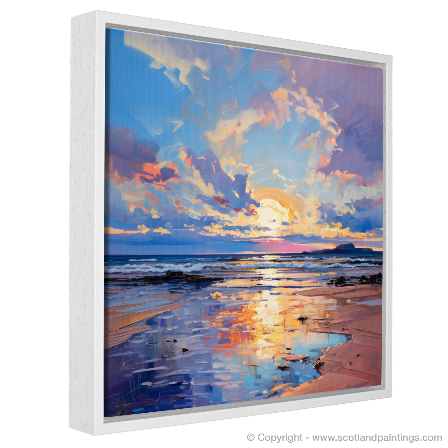 Painting and Art Print of Longniddry Beach at sunset entitled "Sunset Serenade at Longniddry Beach".
