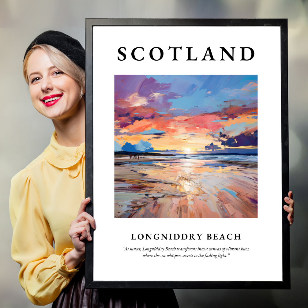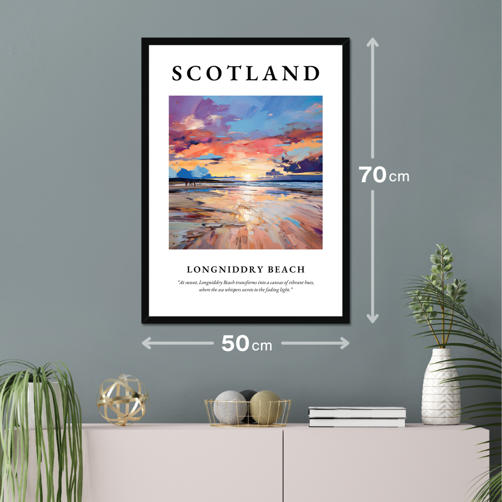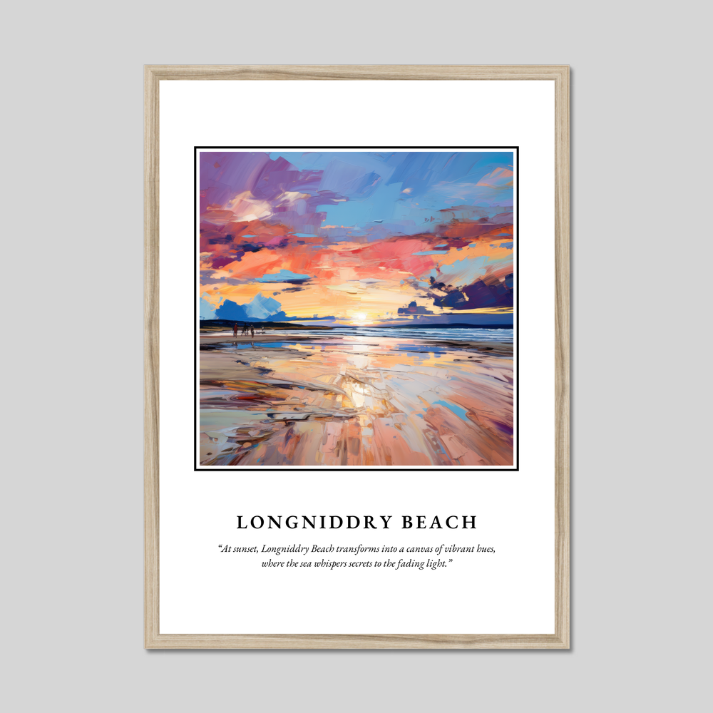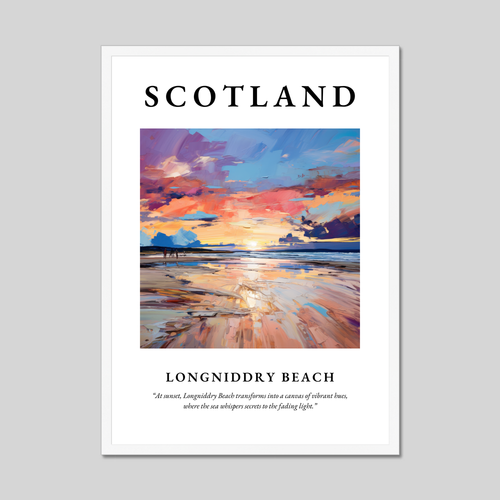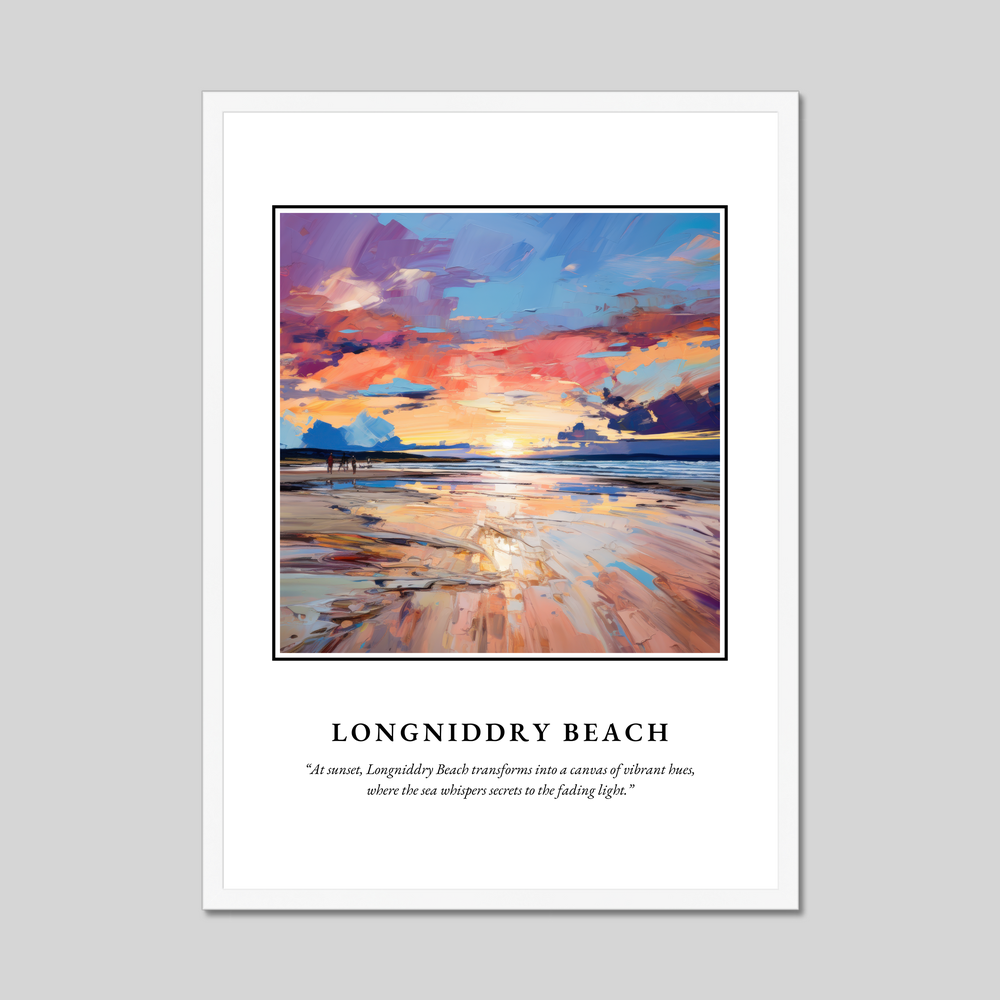 Whether you have visited this captivating beach or simply appreciate its natural allure and cultural significance, this poster serves as an evocative reminder. Let it transport you to a place where the sea and sky converse in vibrant colours, offering a glimpse into the peaceful yet dynamic landscape that defines Longniddry Beach.
