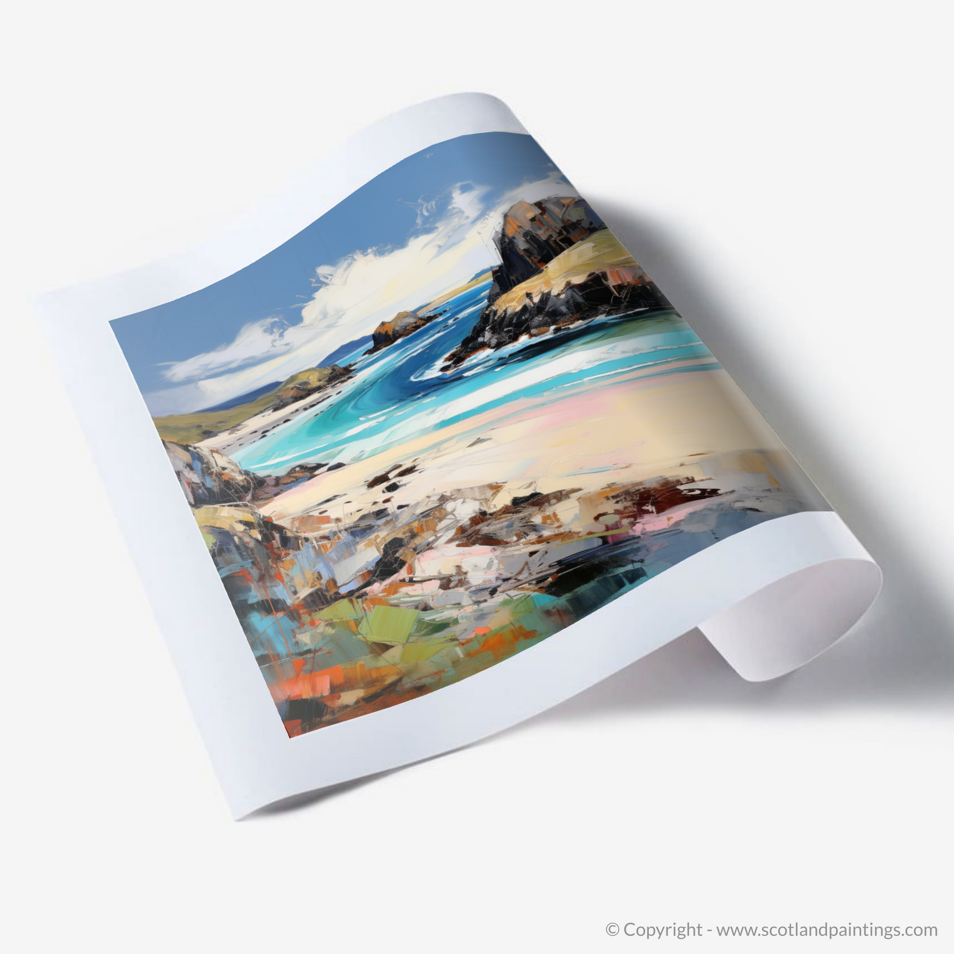 Experience the rugged beauty of Scotland's natural landscape with this evocative print inspired by the serene Balnakeil Bay, Durness, Sutherland. Captivating with its expressive brushwork, this piece delves into the essence of Expressionism, where each stroke and hue pulsates with the raw emotion and power of the scene.