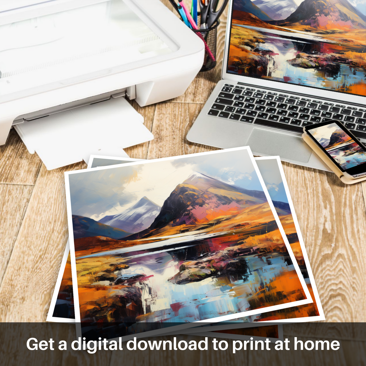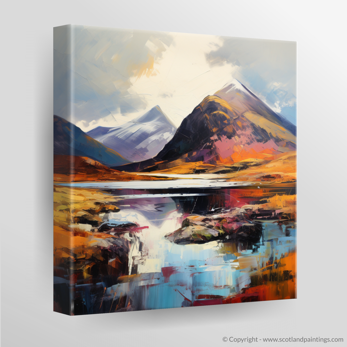 This visual symphony, with its ebullient colour palette and expressive execution, is not just an ode to the landscape but a testament to the emotional power of expressionist art. It encapsulates the spirit of the Scottish Highlands, providing a window to the soul of this rugged, enchanting region. A statement piece in our 'Scottish Mountains' collection, it promises to stir the imagination and bring the spirit of the Highlands into any living space or collection.