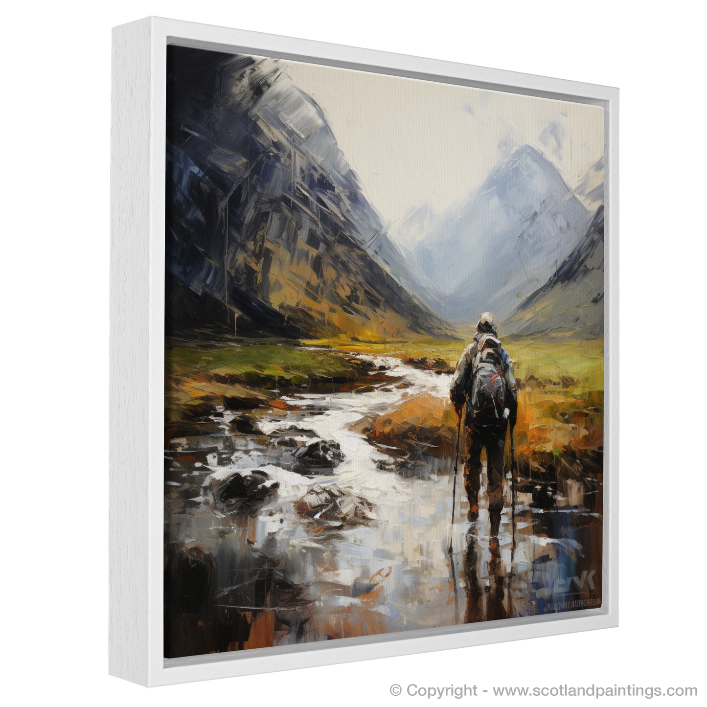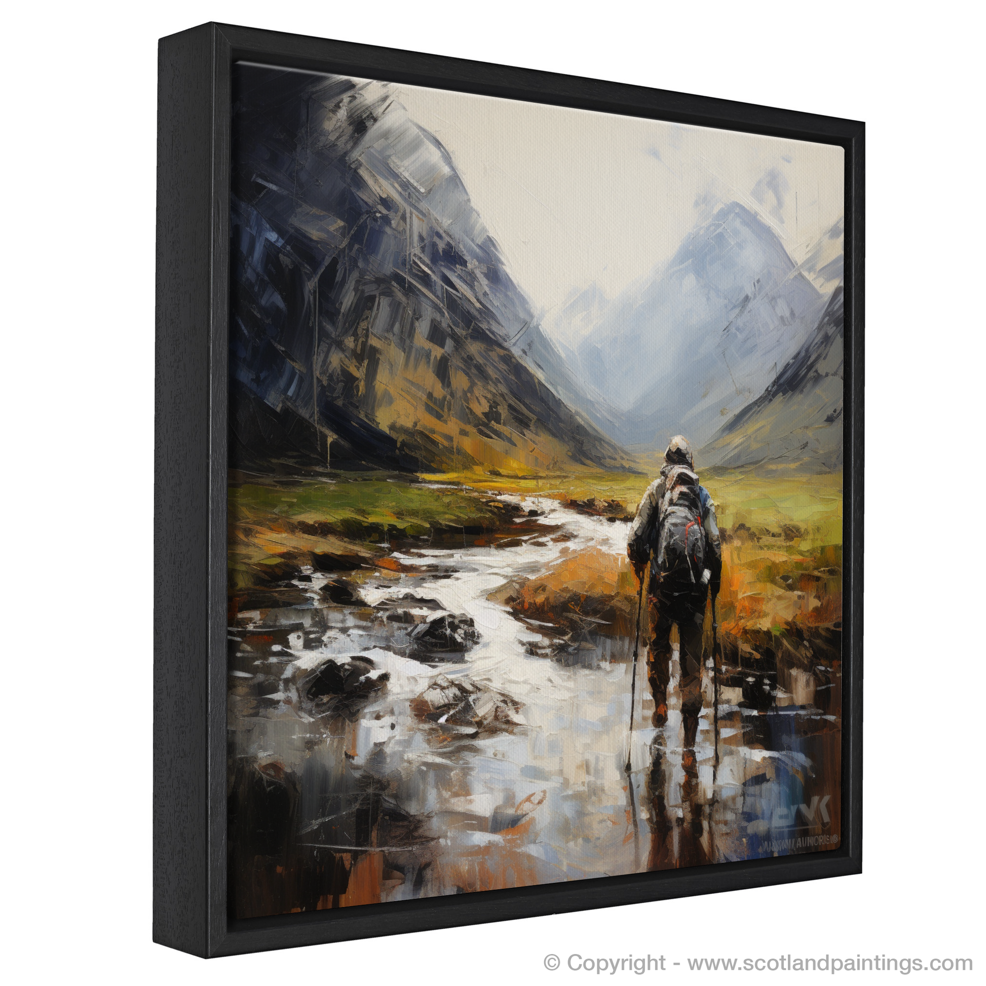 Painting and Art Print of Walker crossing River Coe in Glencoe entitled "Walker's Contemplation: An Expressionist Journey through Glencoe's Wild Terrain".