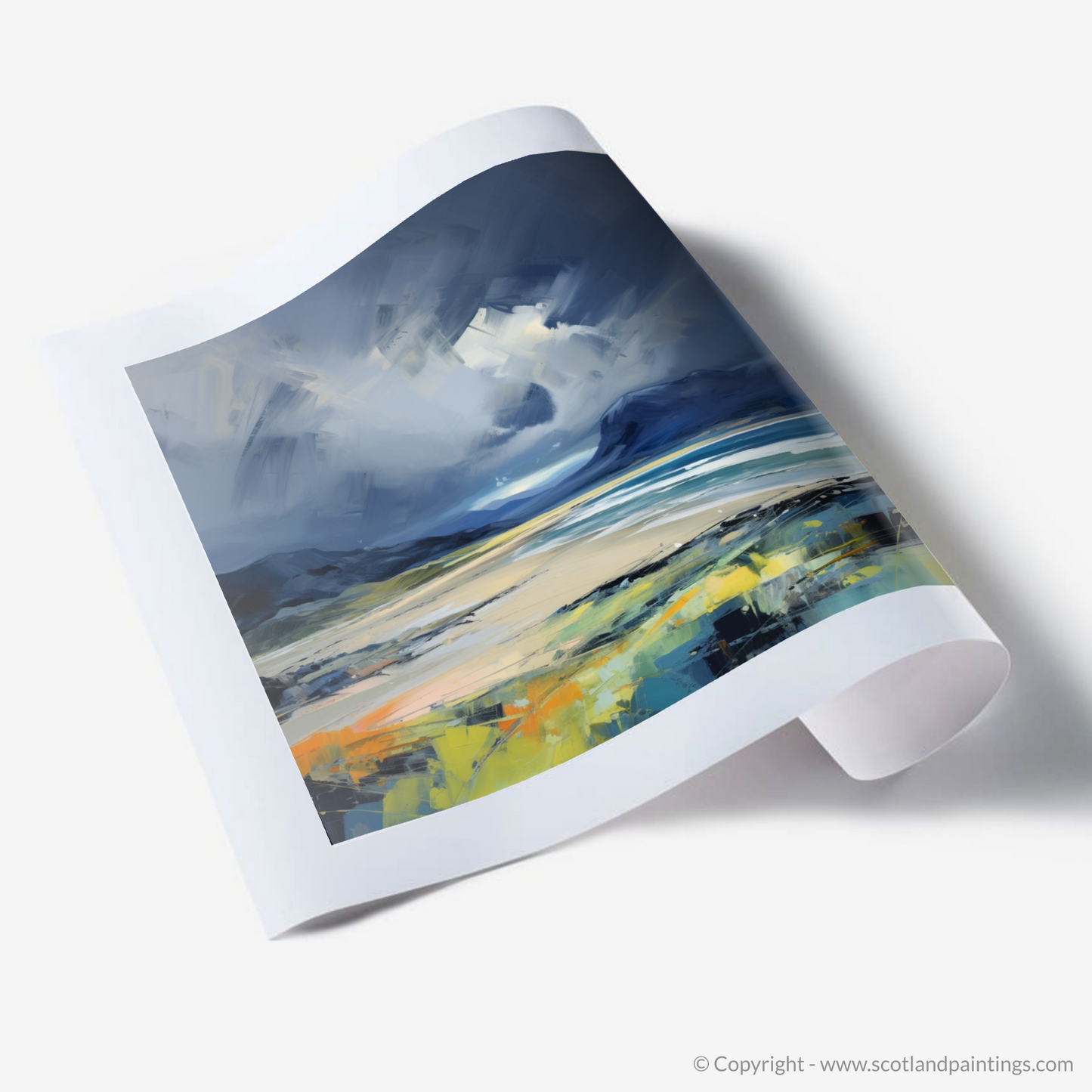 Painting and Art Print of Scarista Beach with a stormy sky. Storm's Embrace: An Expressionist Ode to Scarista Beach.