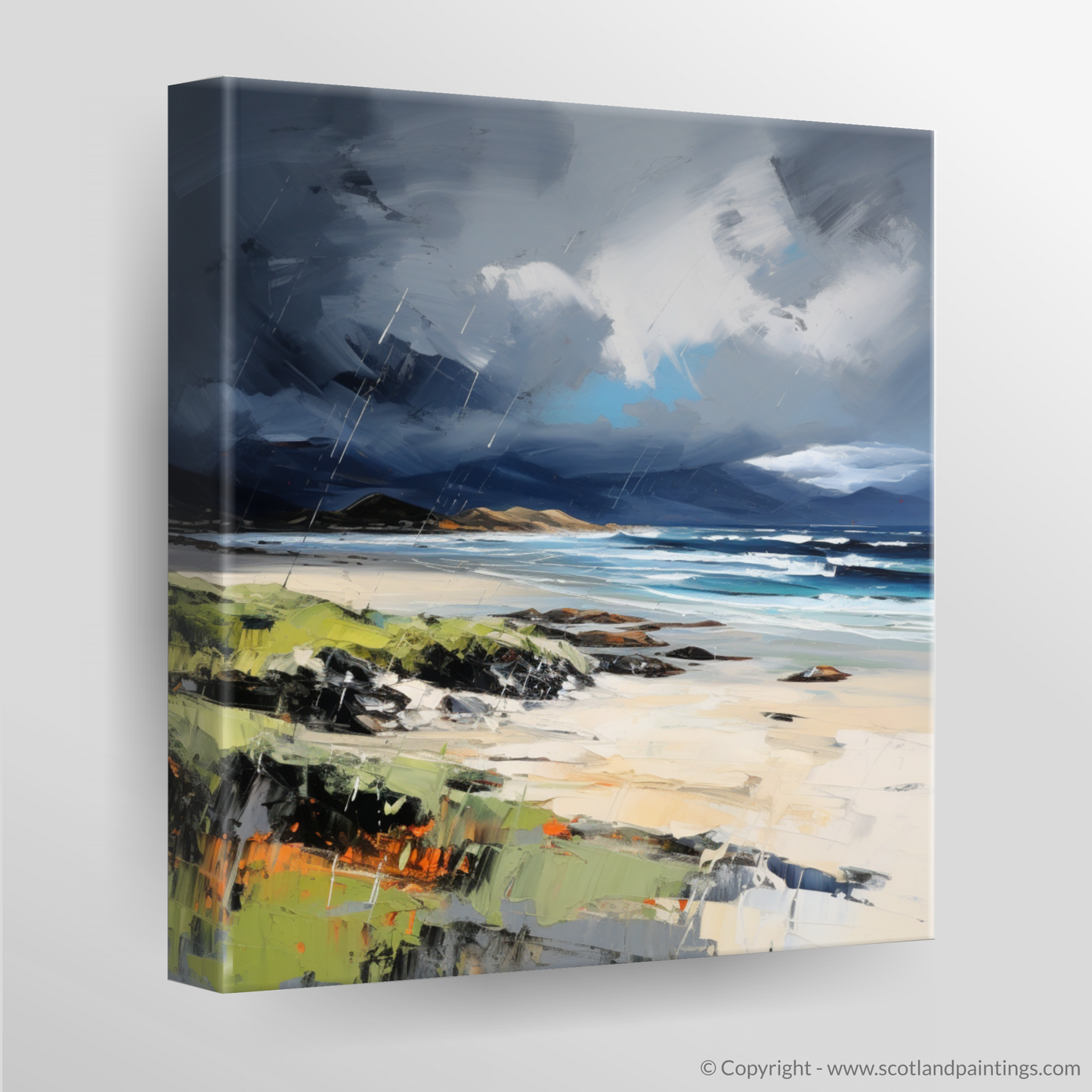 Painting and Art Print of Scarista Beach with a stormy sky. Storm's Embrace at Scarista Beach: An Expressionist Homage.
