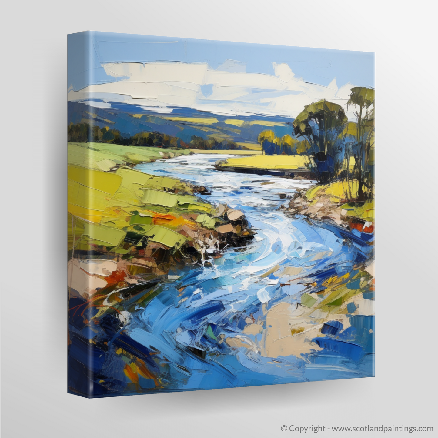 Painting and Art Print of River Deveron, Aberdeenshire entitled "Vibrant Deveron: An Expressionist Ode to Aberdeenshire's Dynamic Waterscape".