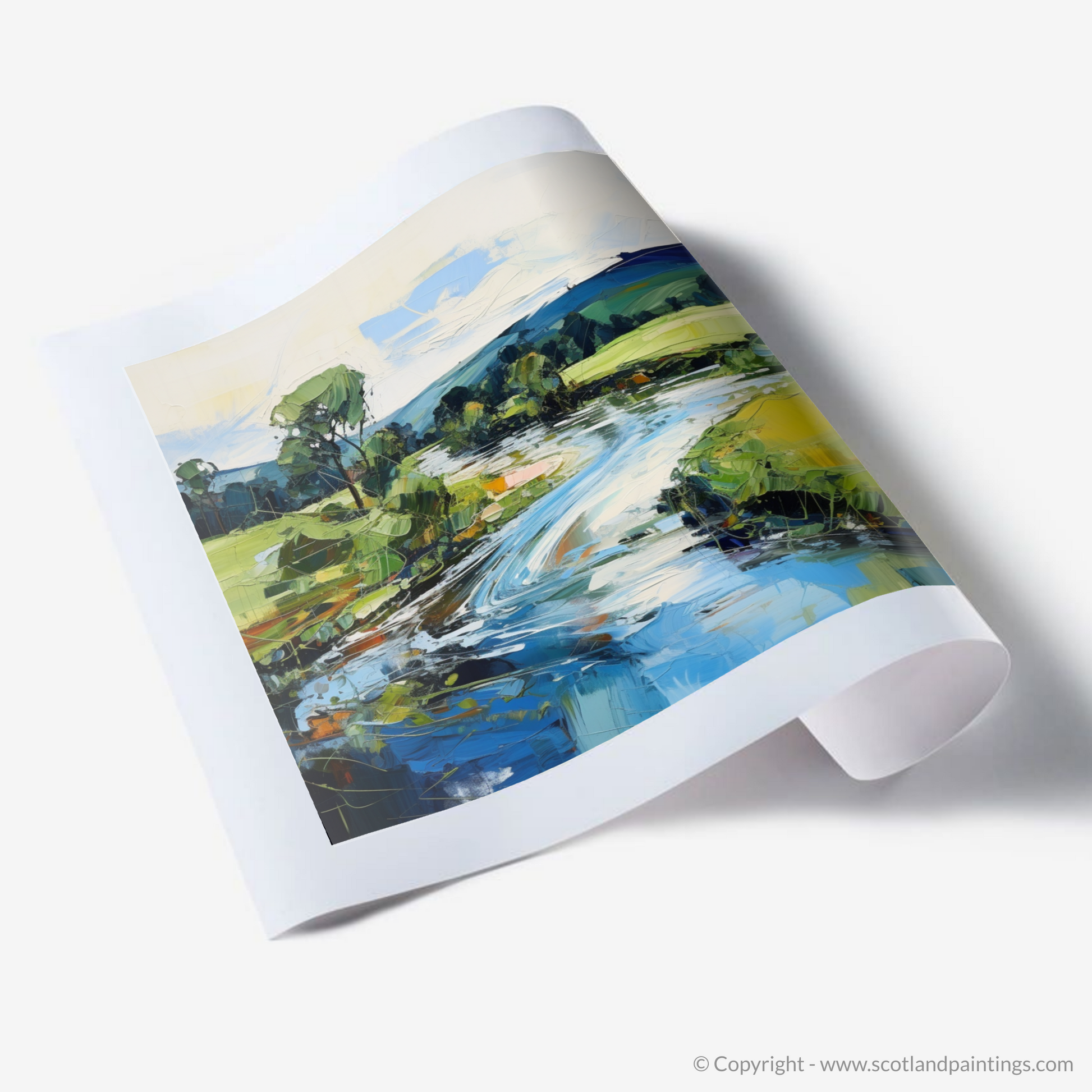 This print forms part of the exclusive 'Scottish Rivers' collection, celebrating the spirit and essence of Scotland's waterways through the emotive power of expressionism. It is a piece that does not merely present a location but interprets the very soul of the landscape, offering a unique aesthetic experience that is as enigmatic as it is beautiful. Whether adorning a living space or becoming the centrepiece of an office, this artwork is a vibrant invitation to lose oneself in the wild Scottish countryside.