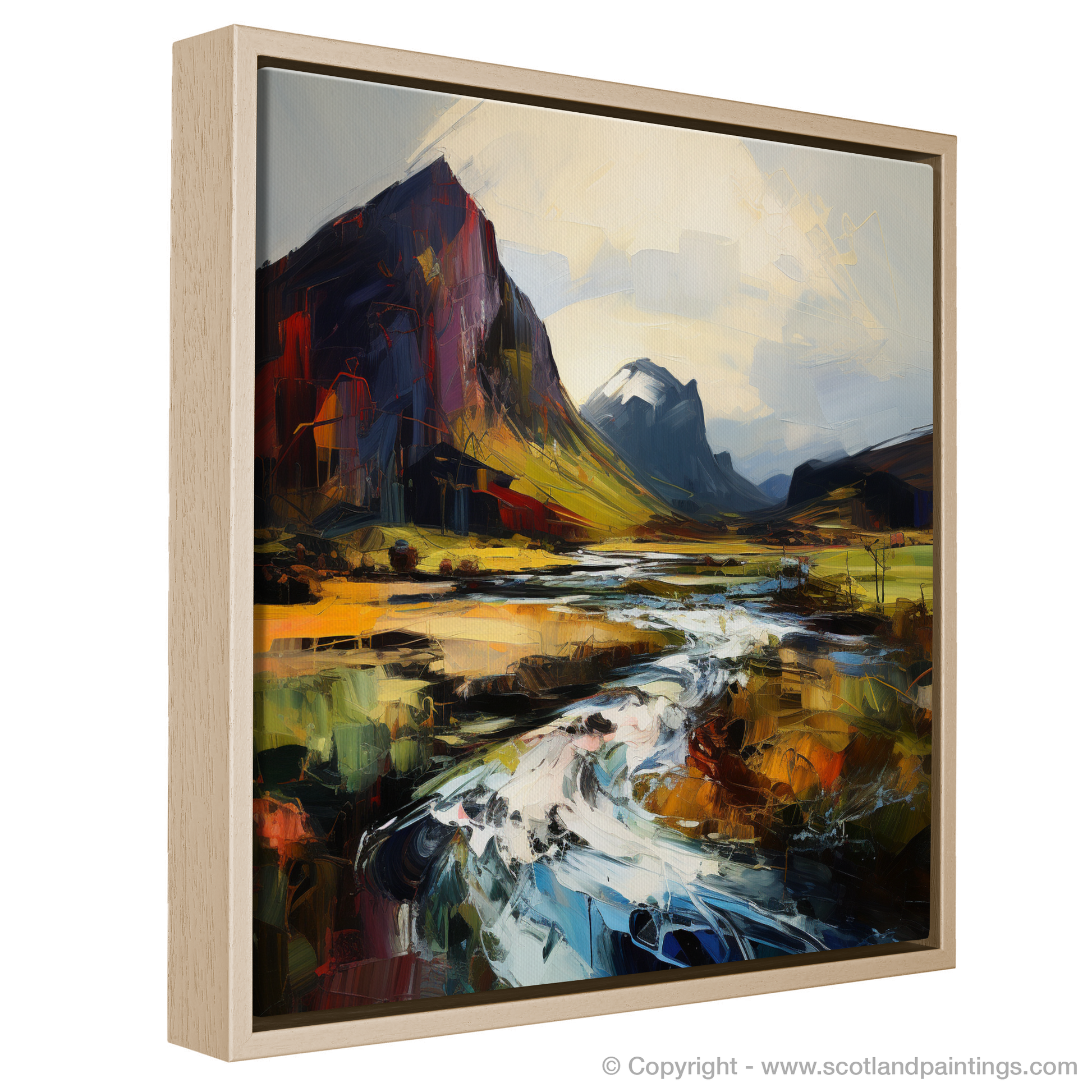 The sky, a canvas of light and shadow, is rendered with sweeping, gestural brushwork, adding a sense of drama and the fleeting nature of light as it dances across the scene. This print, part of the 'Scottish Munros' collection, represents not just a place, but an experience—a raw and powerful interaction with Scotland's wild heart. It is an invitation to explore the profound and stirring emotions that such landscapes can inspire, making it an ideal piece for any lover of nature, art, or the soul-stirring beauty of Scotland's mountainous terrain.