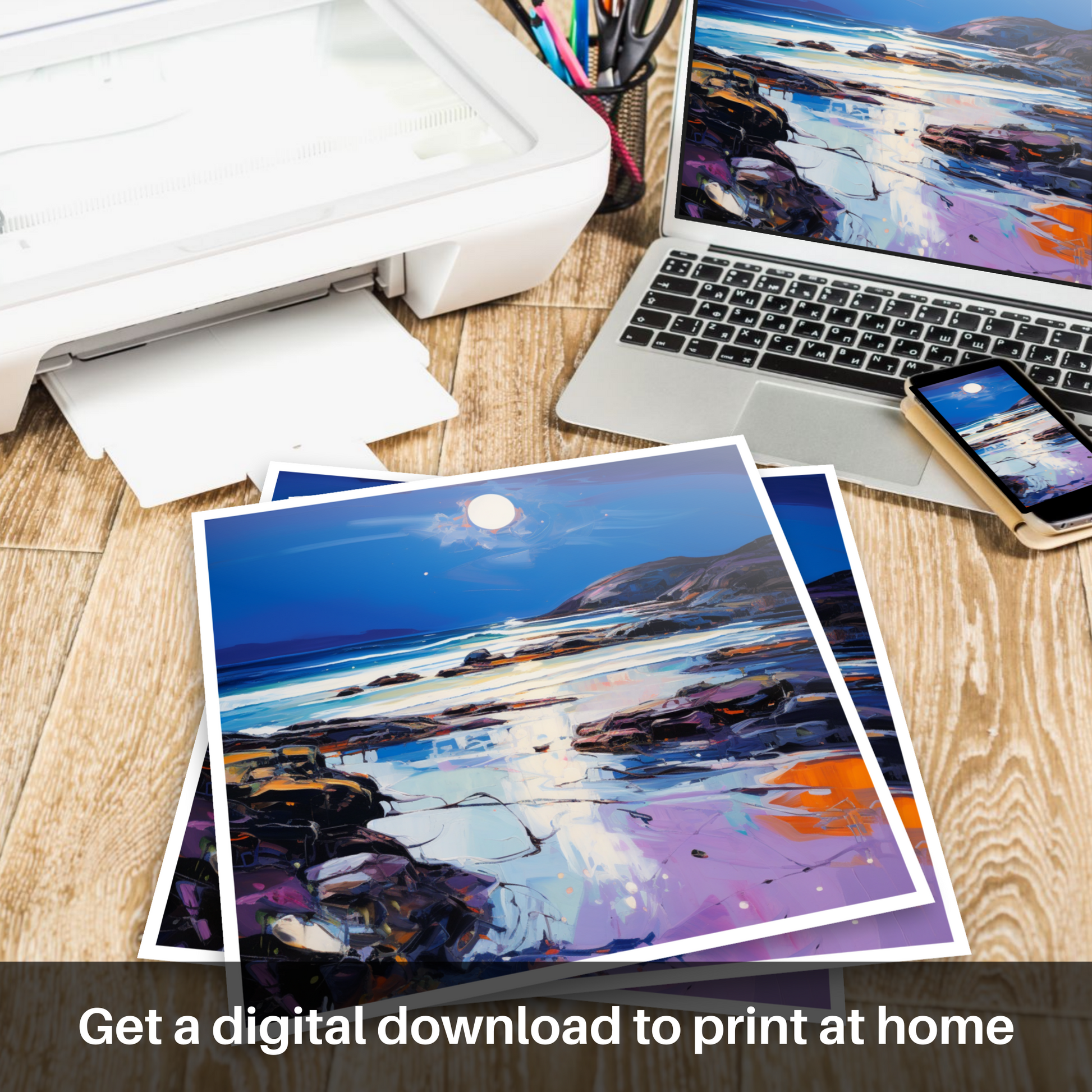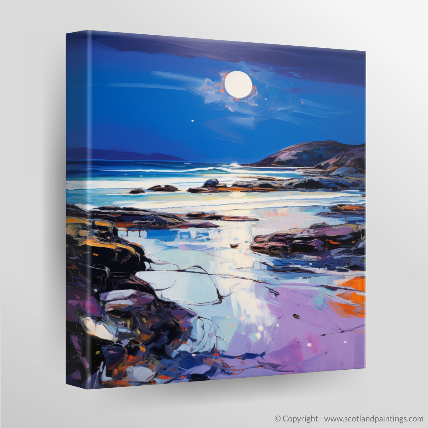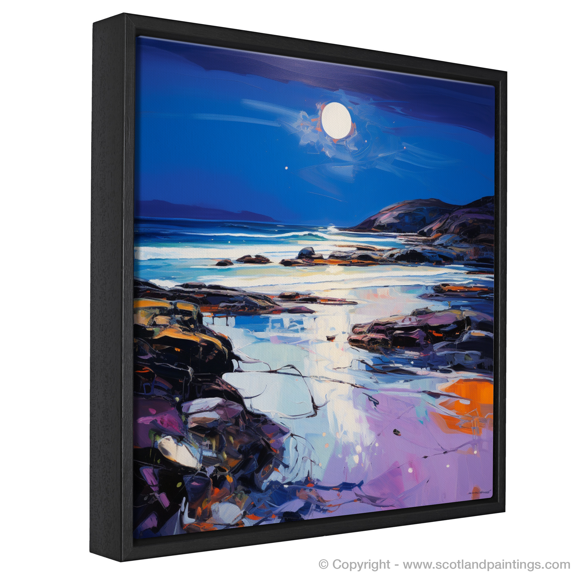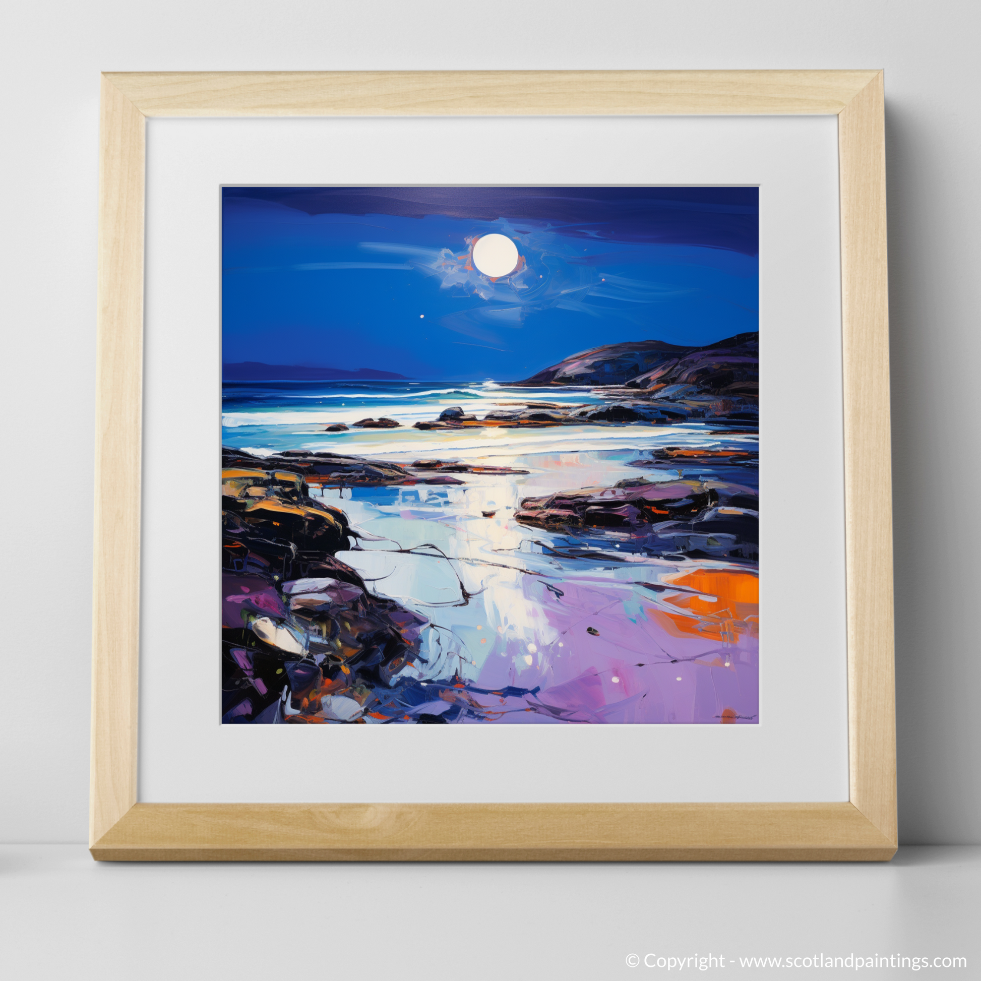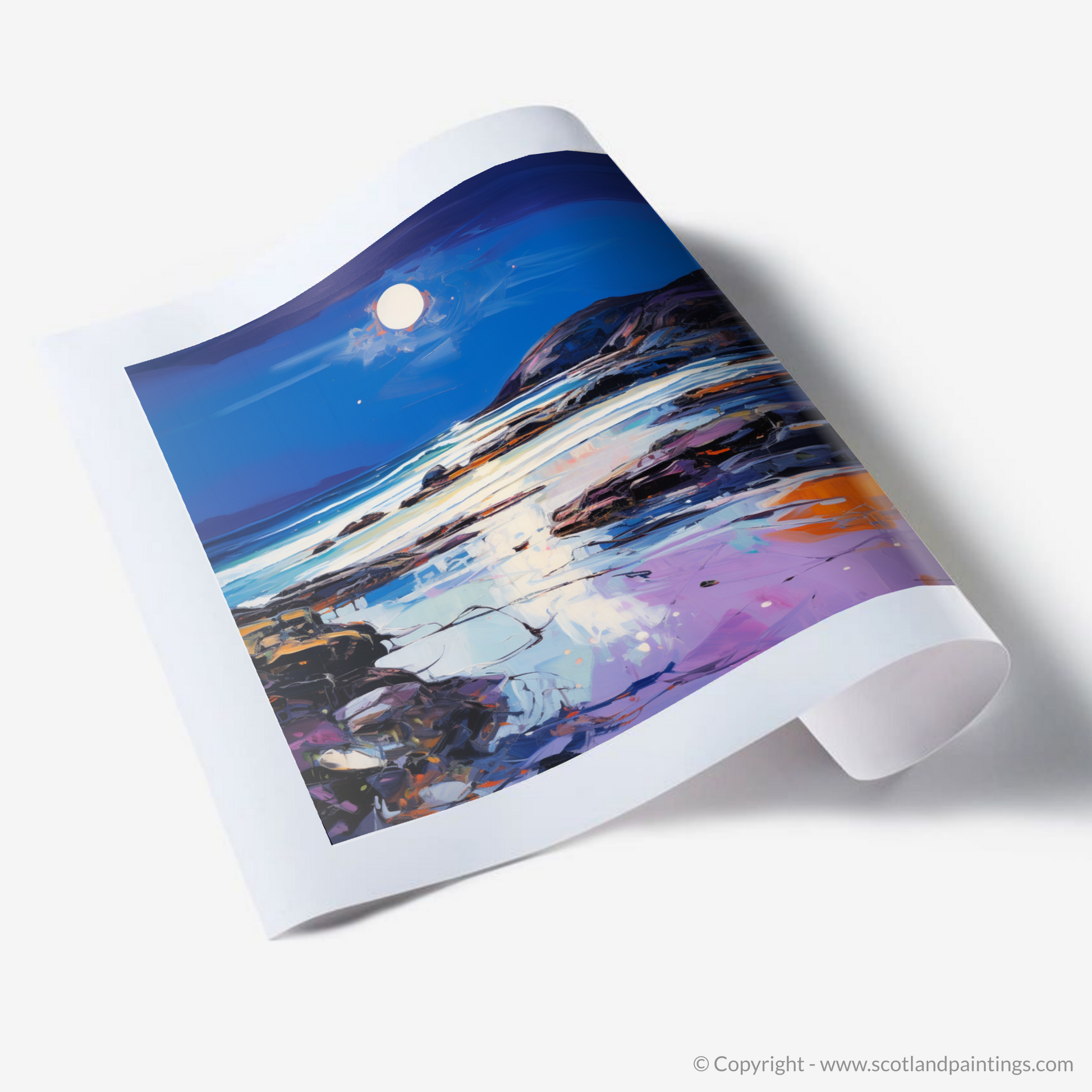 Capturing the breathtaking beauty of Seilebost Beach as dusk descends, this expressive print evokes the serene yet dynamic atmosphere of the Scottish Highlands. The artwork is a poignant interpretation of the beach's rugged charm, showcasing vibrant hues and bold brushstrokes characteristic of Expressionist art.