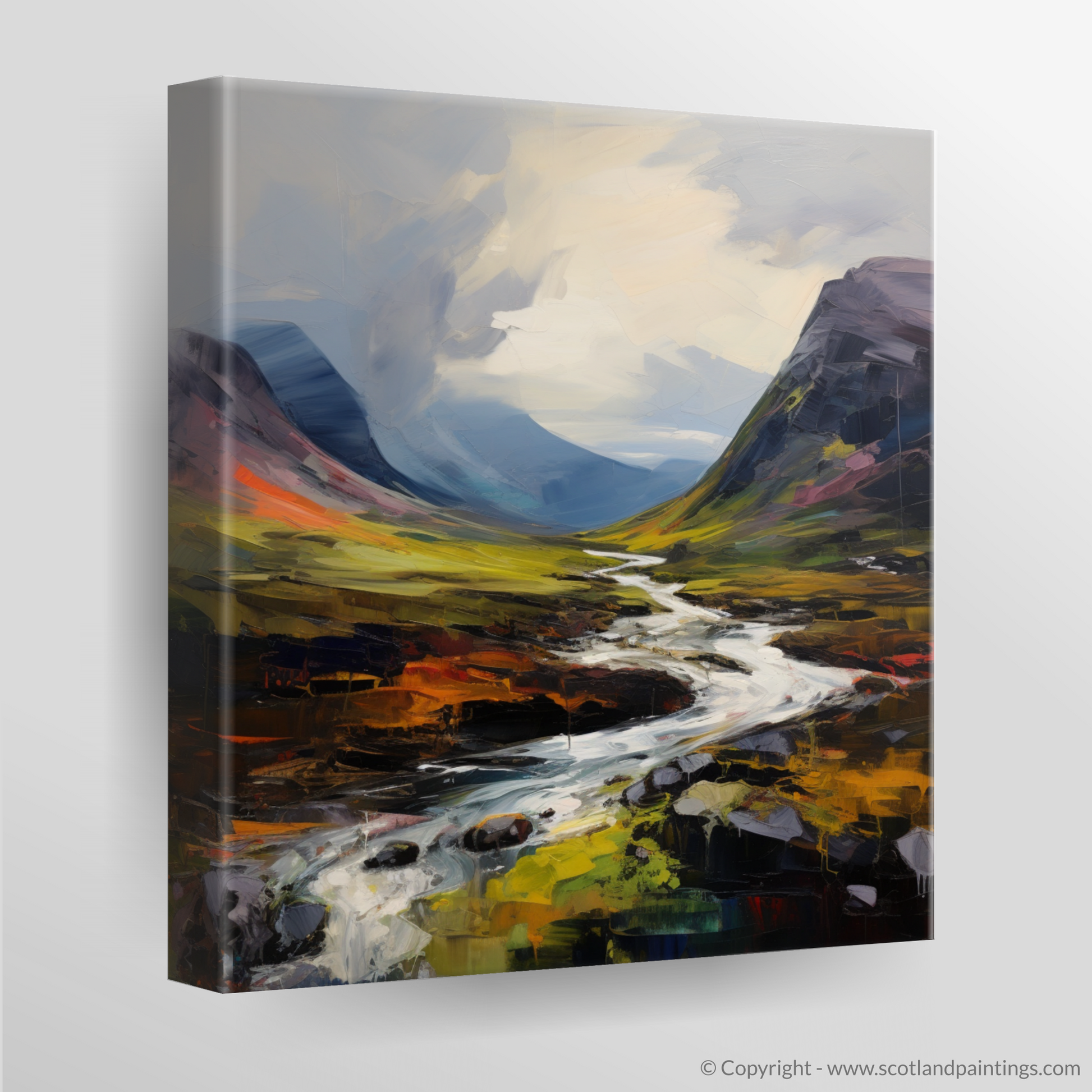 Drawing inspiration from the rugged natural beauty of one of Scotland's beloved Munros, this expressive piece of art brings the undulating terrain and dynamic weather of Meall Greigh to life on canvas. Captured through bold brushwork and a vibrant palette, this print presents a valley carved by the elements, where the stark contrasts of the Scottish Highlands are lovingly rendered.