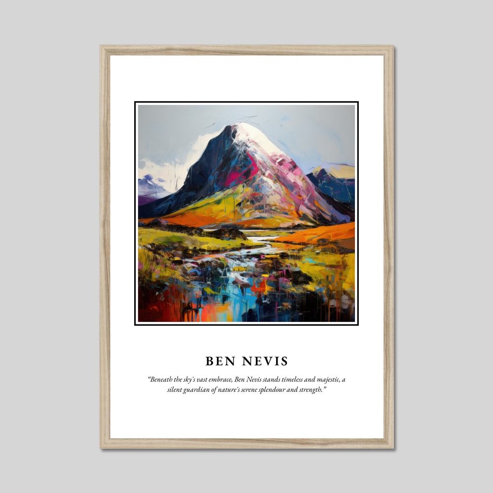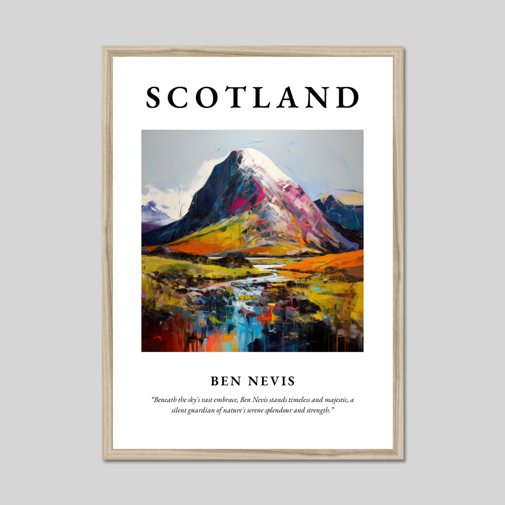 Transport yourself to the rugged beauty of the Scottish Highlands with our stunning framed poster print, featuring an evocative expressionist representation of Ben Nevis. Measuring an impressive 50cm x 70cm, this striking piece dominates any wall, offering a window into the soul of Scotland without breaking the bank. Available in black, white, or natural wood-effect frames, this versatile artwork effortlessly complements any décor, making it a perfect addition to your home or office.