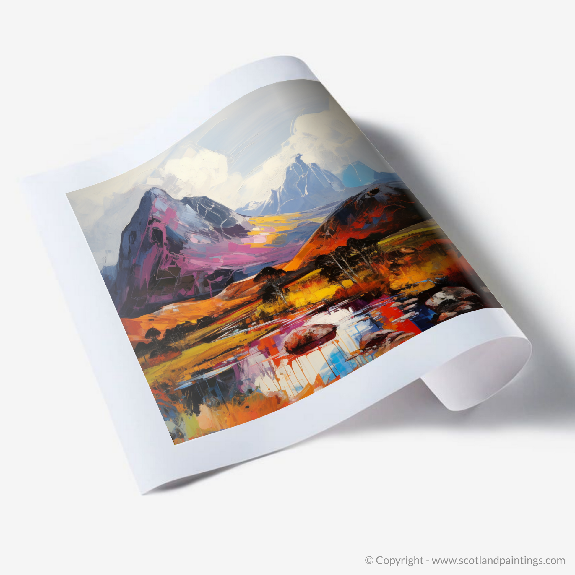 This captivating print offers more than a mere representation; it is an invitation to explore the profound and stirring sensations that only the Scottish Highlands can inspire. It is perfect for those who appreciate the power of nature and the passion of art that dares to express it in its purest form.