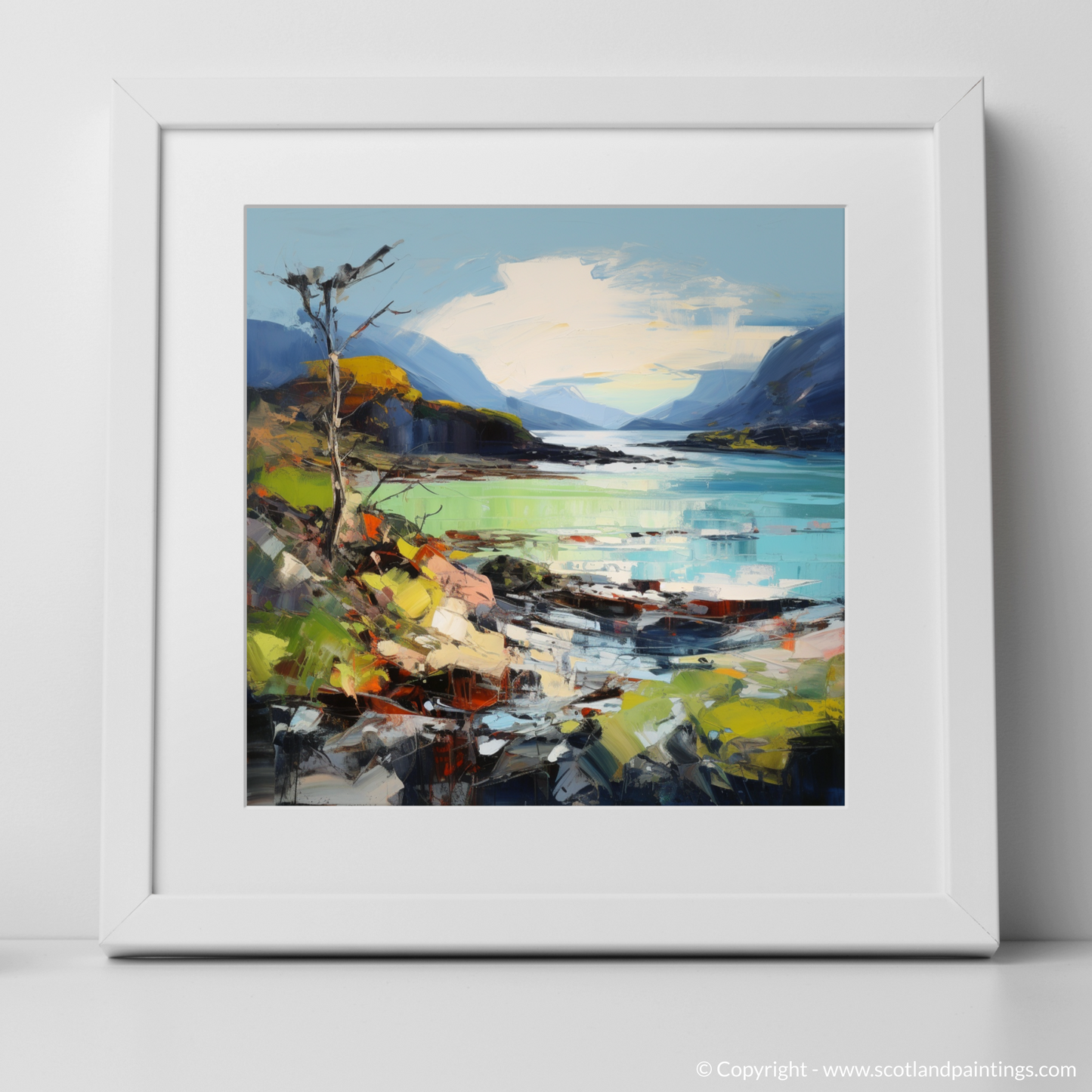 Capturing the rugged charm and vibrant hues of Ardtun Bay, this expressive print is a treasure trove of colour and emotion, perfect for enthusiasts of Scottish landscapes and expressive art alike. The piece teems with dynamic brushstrokes that evoke the untamed beauty of nature, where land, sea, and sky converge in a symphony of colour.