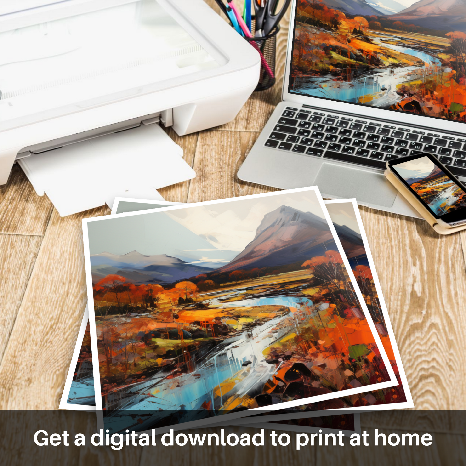 This piece invites contemplation and reflection, a visual feast for the senses that makes a striking statement in any space it adorns. Whether as a centrepiece or a complement to your collection, this print of Glencoe suffused with autumnal hues will resonate with those who appreciate the raw, passionate energy of expressionist art, and the timeless allure of one of Scotland’s most majestic landscapes.