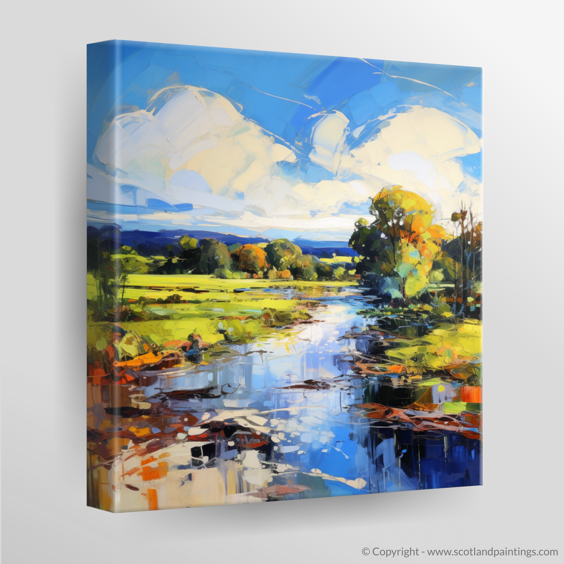 This captivating print captures the untamed beauty of River Leven in West Dunbartonshire through the evocative brushwork of expressionism. The artwork radiates with the vibrancy of nature, showcasing a symphony of bold, impasto strokes that bring the Scottish landscape to life. The river itself is the central marvel here, reflecting the sky above with a mirror-like precision that only seems to intensify the dreamlike quality of the surroundings.