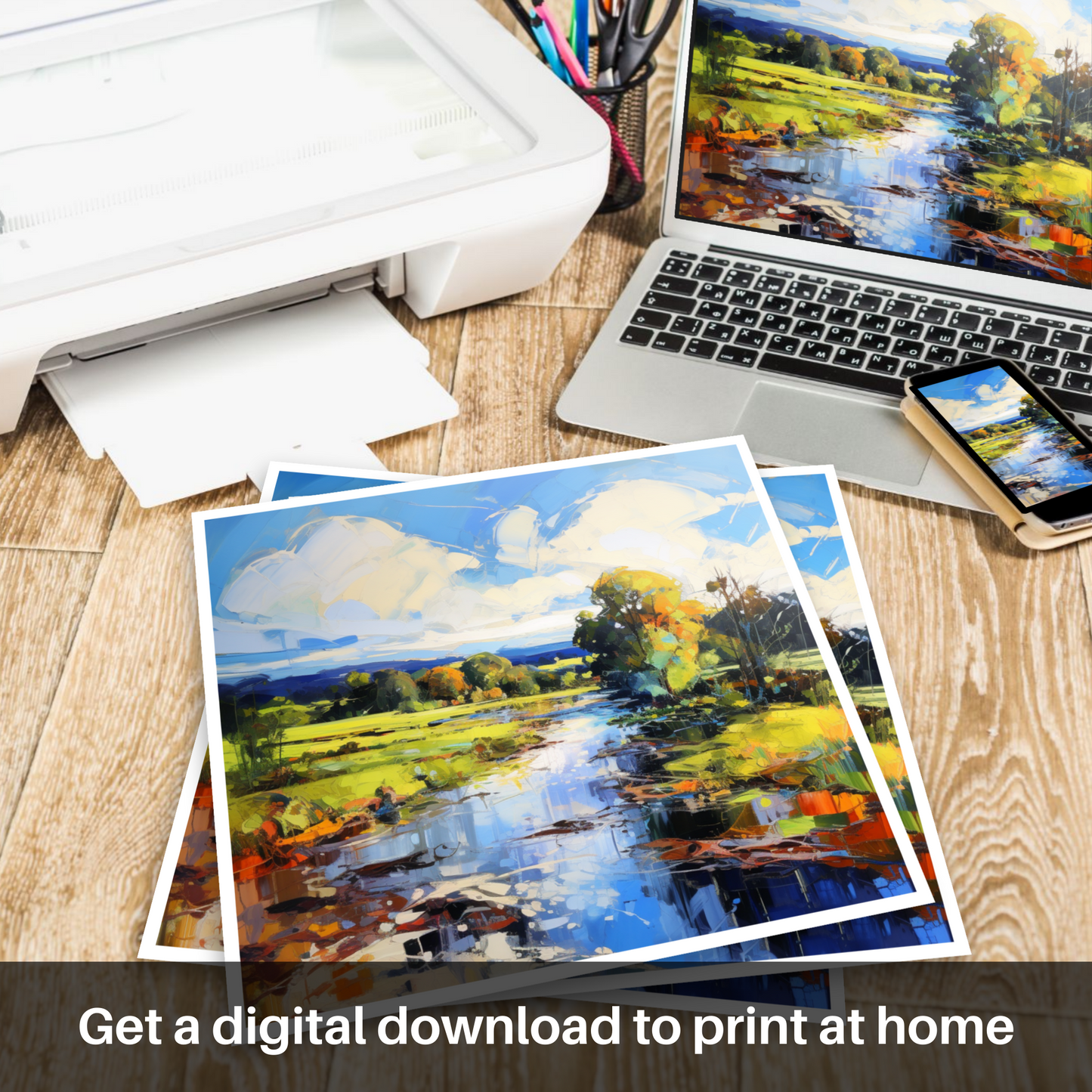 One can almost feel the fresh Scottish breeze and hear the gentle flow of the river as they gaze upon this print. It is a piece that not only celebrates the raw elegance of the River Leven but also offers viewers an invitation to contemplate the power and majesty of Scotland's natural wonders. This print promises to be a statement piece in any collection, inviting onlookers to explore the richness and depth of an expressionistic love letter to Scottish rivers.
