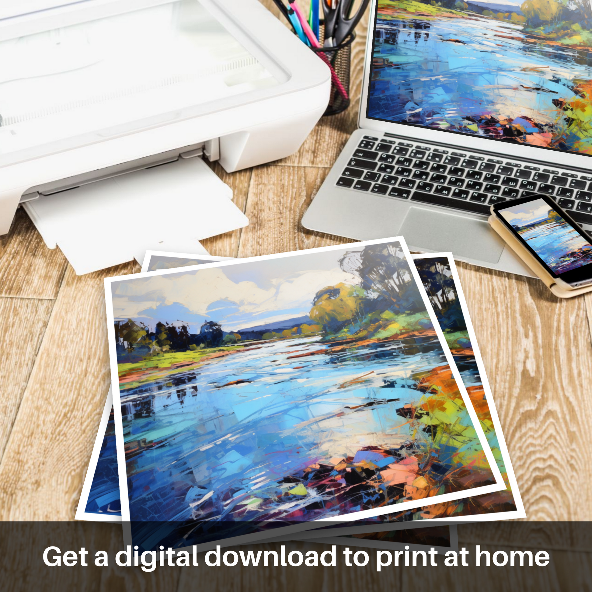 Experience the evocative beauty of West Dunbartonshire with this captivating interpretation of the River Leven. This expressionist artwork invites you to delve into a vivid landscape where emotion and colour blend to capture the essence of one of Scotland's most picturesque waterways.