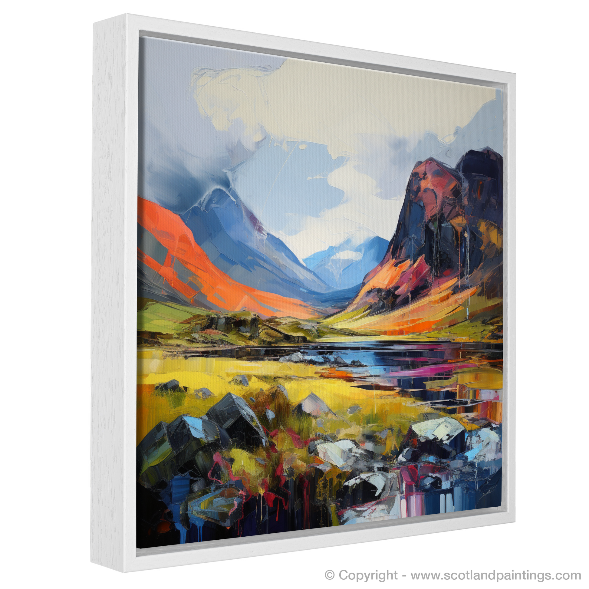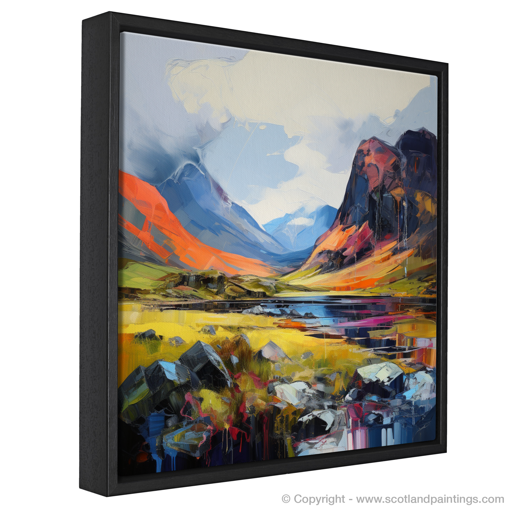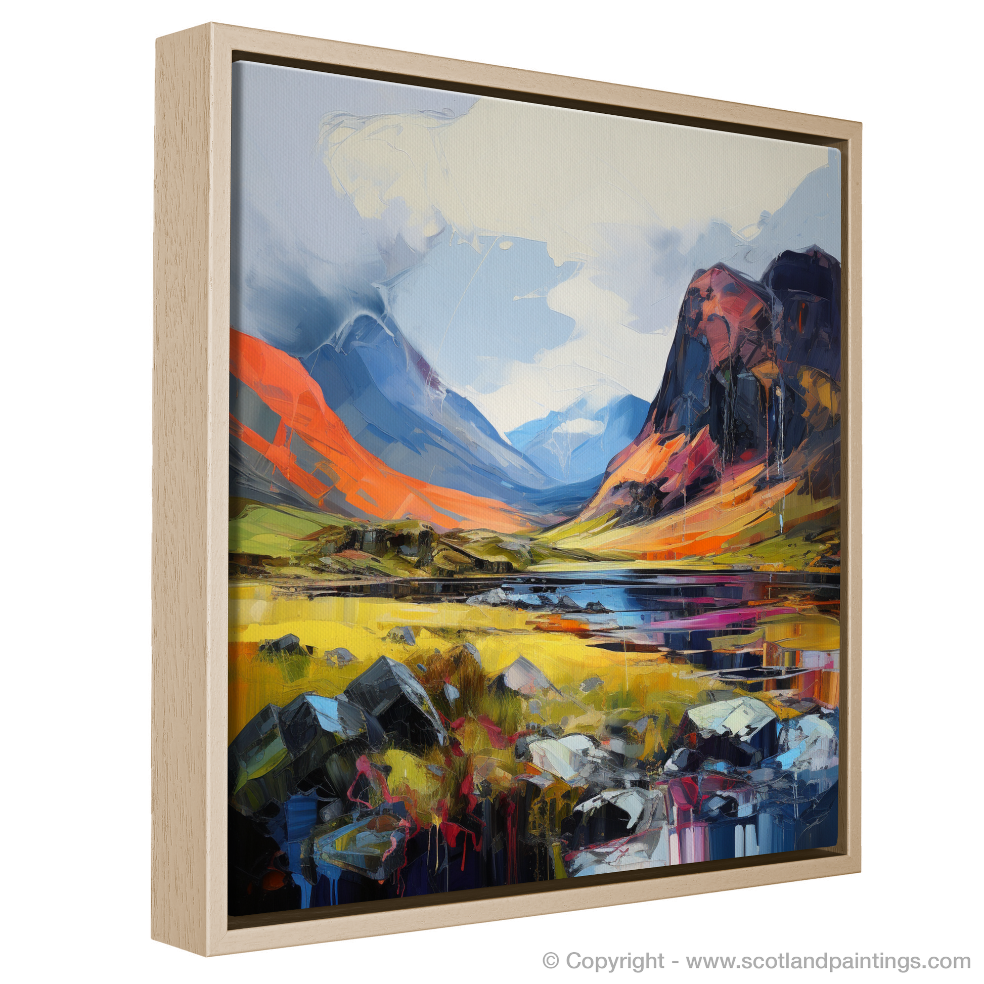 Experience the rugged beauty of the Scottish Highlands with this expressive and striking print, capturing the raw essence of Creag Leacach. Swathes of vivid colour boldly interpret the natural landscape, with undulating mountain ridges rising majestically against a dramatic sky. The painterly strokes evoke a sense of movement, mirroring the wild and untamed spirit of the region.