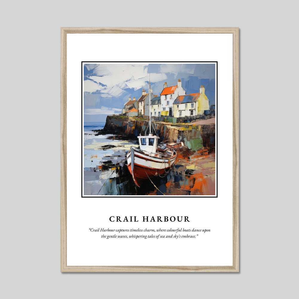 Experience the enchanting allure of Scotland with our captivating Crail Harbour framed poster print. Embodying the vibrant essence of Expressionism, this artwork beautifully captures the lively spirit and timeless charm of one of Scotland’s most picturesque harbours. Standing at an impressive 50cm x 70cm, this piece boldly adorns any wall, making an impactful addition to your home without straining your budget. Choose from sophisticated black, classic white, or a natural wood-effect frame to perfectly complement your decor.