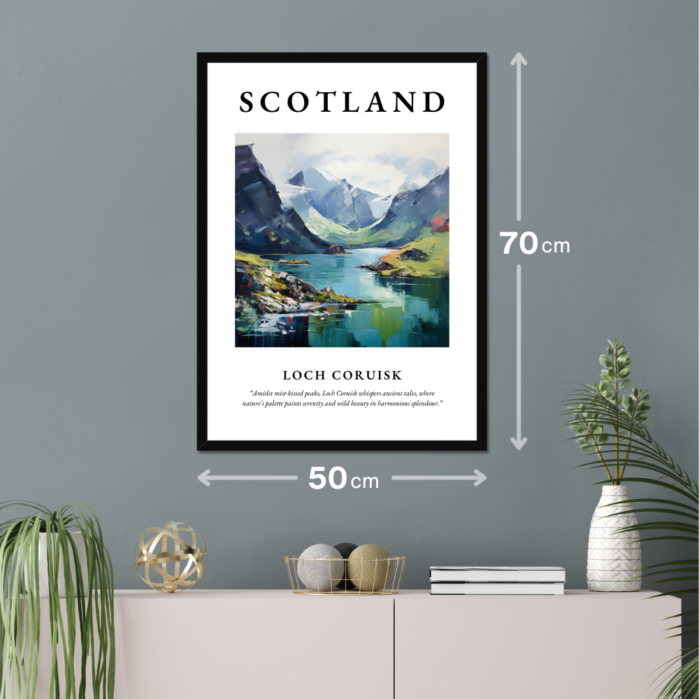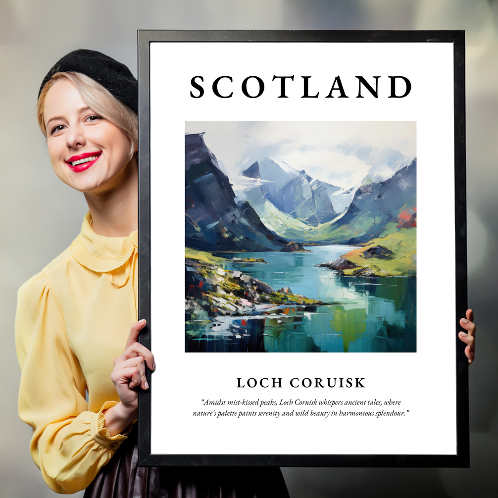 Incorporating the essence of Loch Coruisk into your home through this captivating poster print not only adds visual appeal but also an emotional touchstone. It serves as a reminder of Scotland’s wild heart, enticing those with a love for adventure, history, and the arts. Allow this piece to transport you to the serene and ethereal landscape of the Scottish Highlands, where the whispers of ancient tales linger in every breeze.