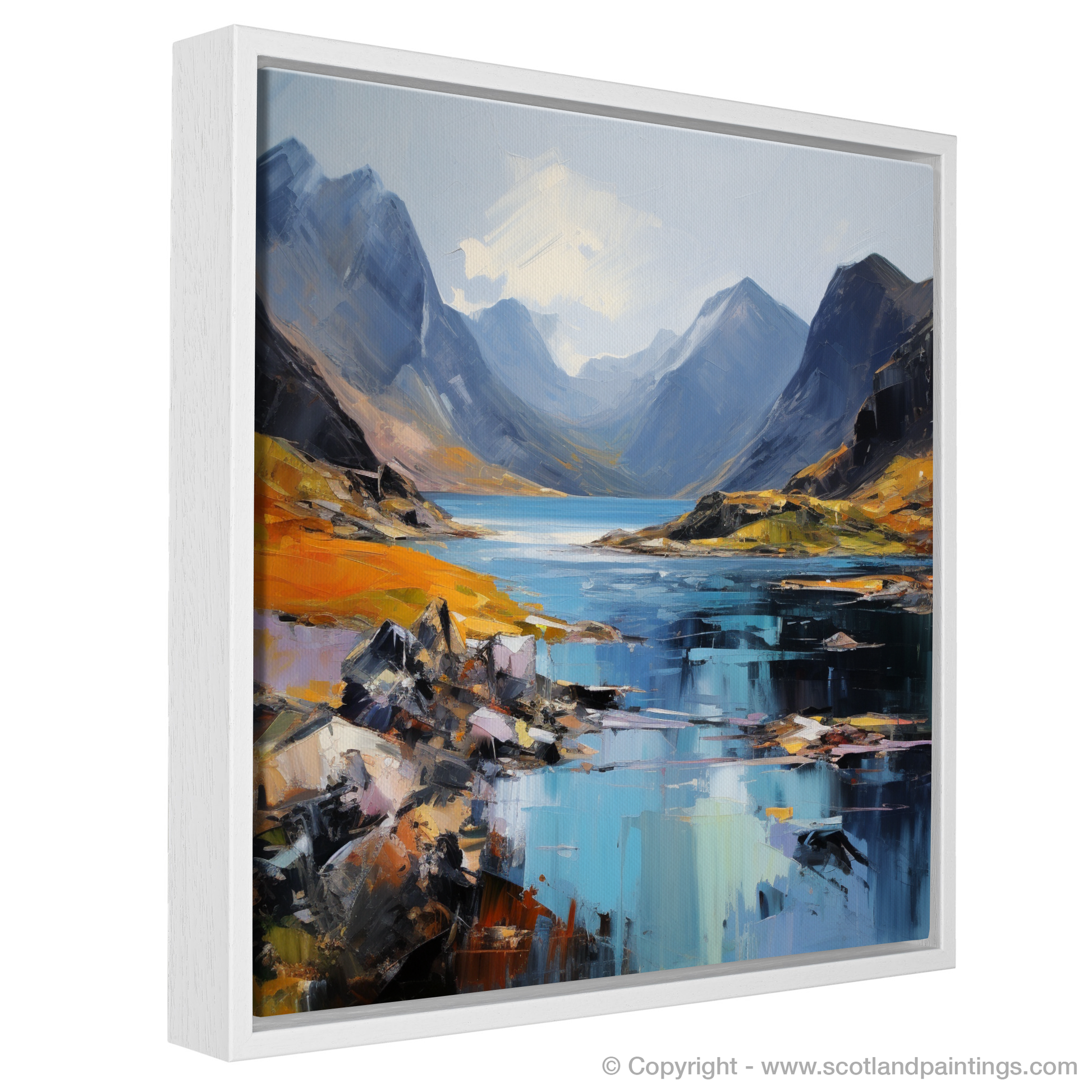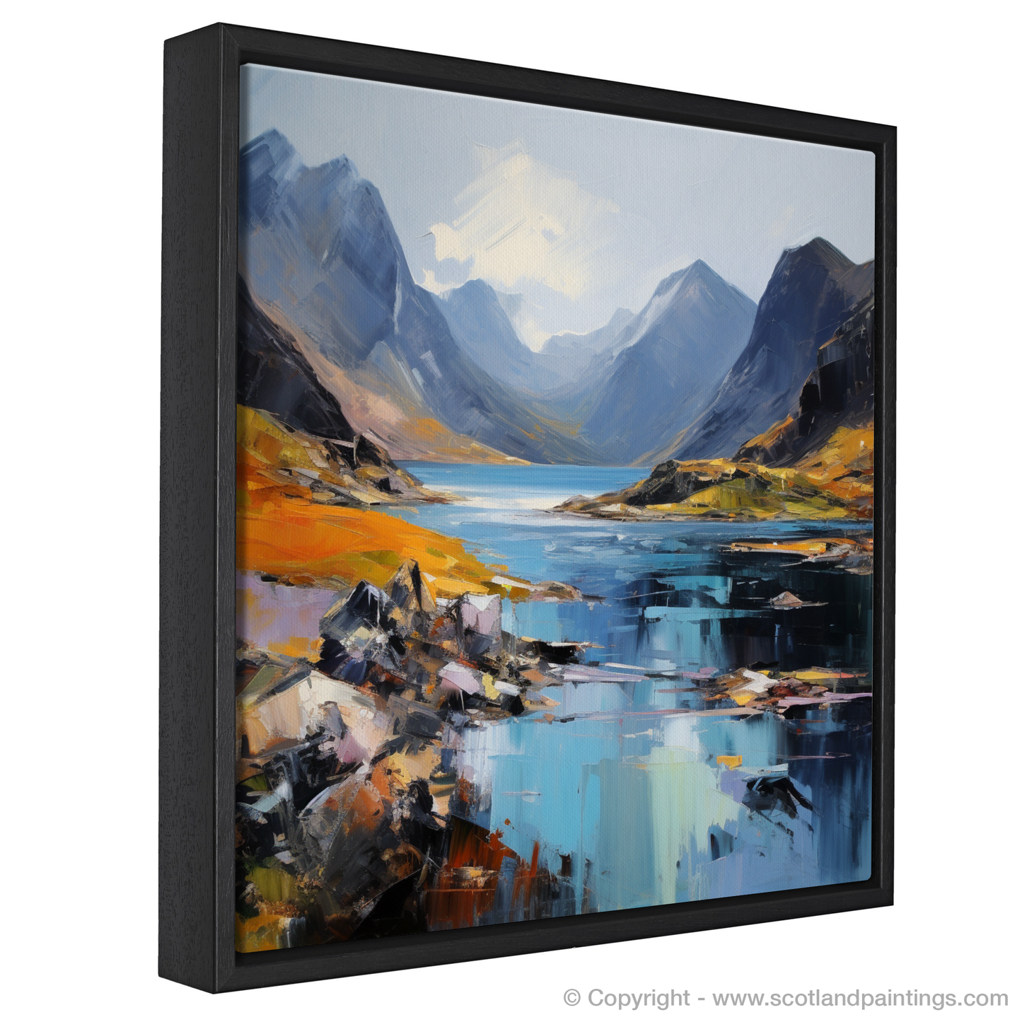 This expressive print captures the rugged and dramatic essence of Loch Coruisk, nestled in the heart of the Isle of Skye's formidable landscapes. The piece brims with emotional intensity, with bold brushtrokes and a vivid palette that evoke the raw beauty of the Scottish Highlands.
