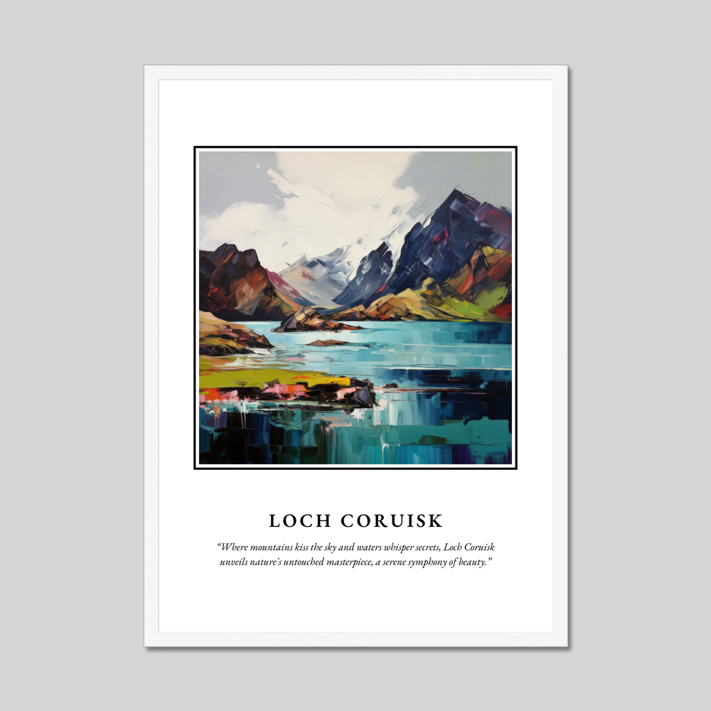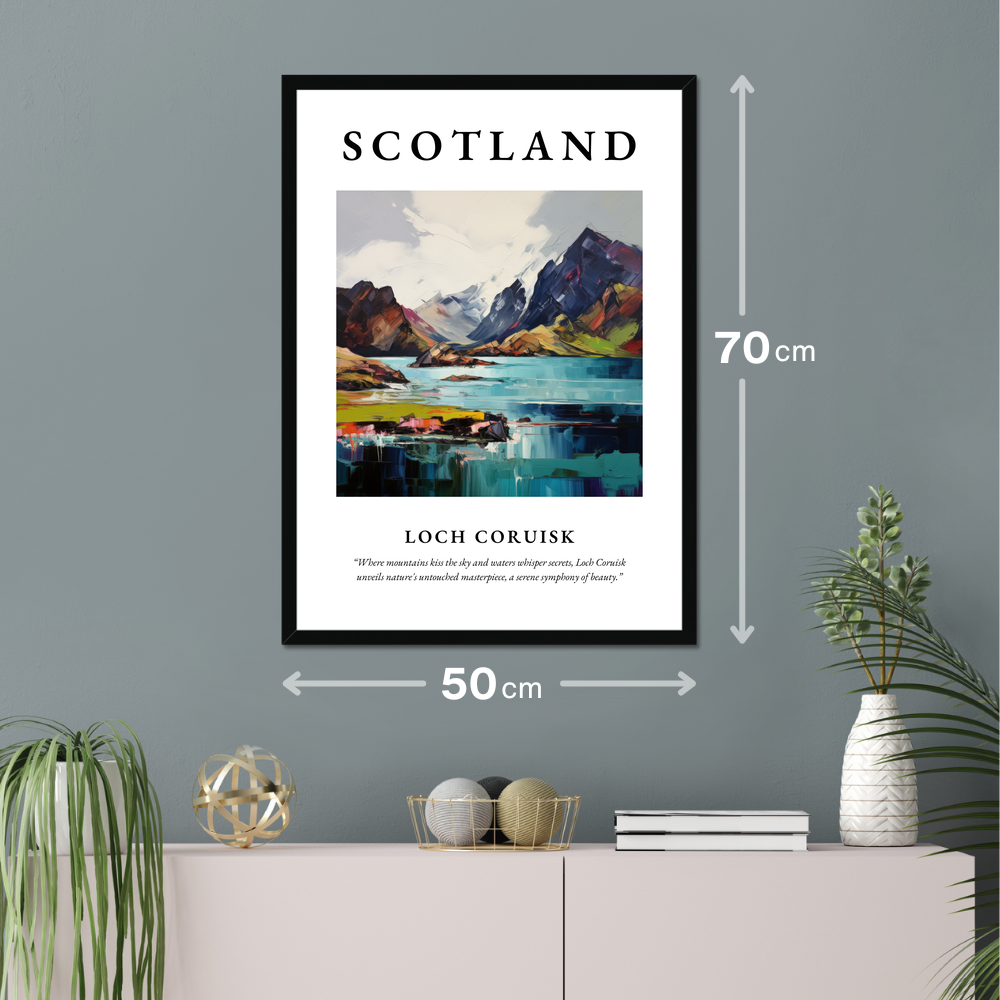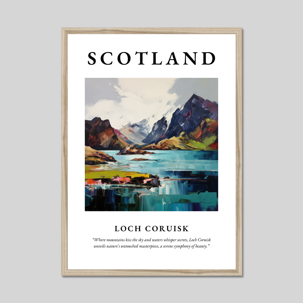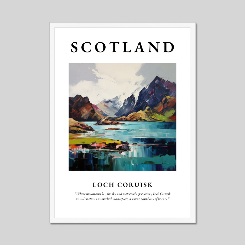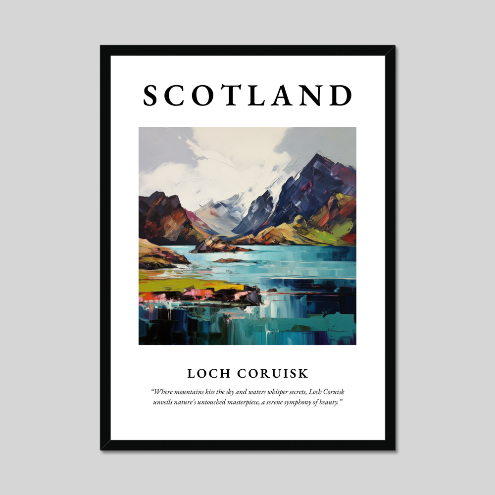 Whether you've walked its shores, dream of visiting, or simply adore the beauty of Scottish landscapes, this framed poster print brings the magic and mystery of Loch Coruisk into your living space, serving as a daily reminder of nature's grandeur and the timeless allure of Scotland.