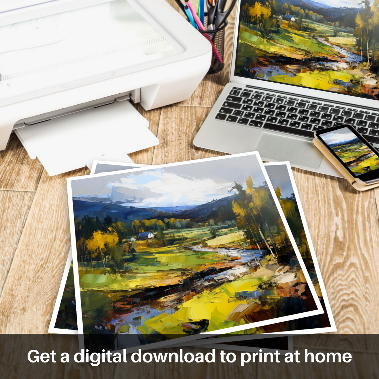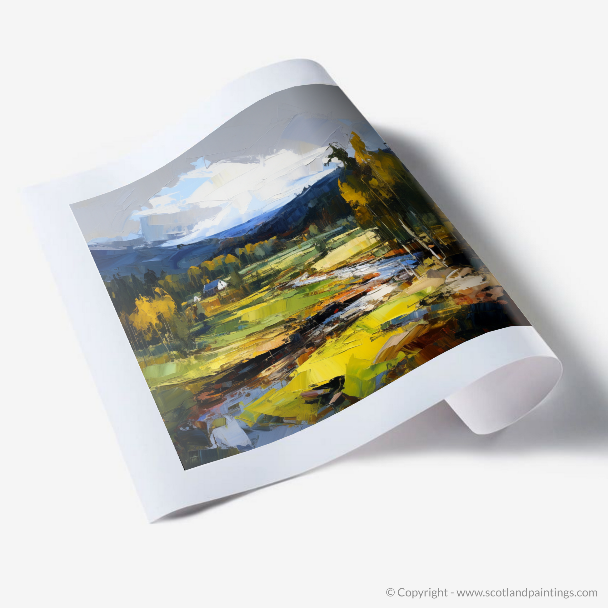 Capturing the vibrant essence of Glen Tanar, Aberdeenshire, this evocative print is a visual symphony of unrestrained expressionism. The piece juxtaposes the calm serenity of Scotlands' natural landscape with a passionate eruption of colour and texture.
