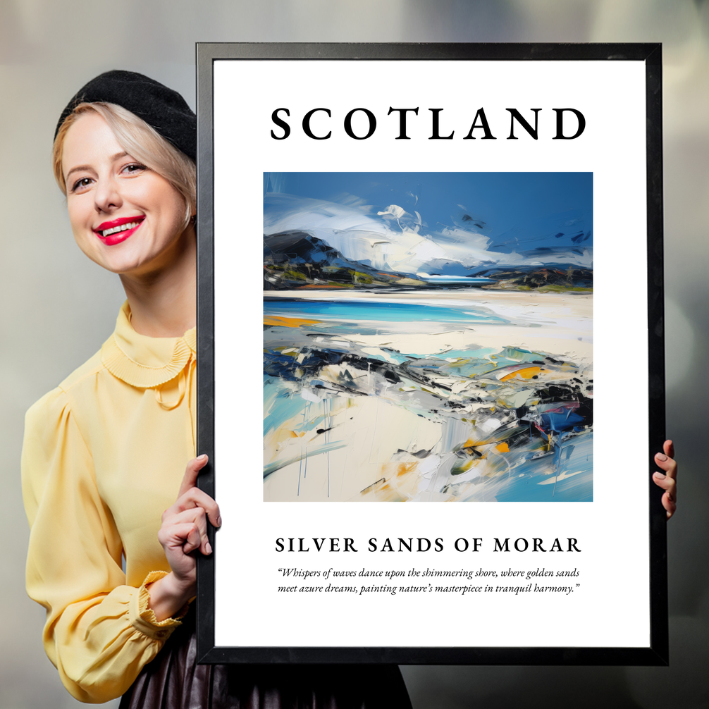 This art piece does more than depict a landscape; it brings to life the ethereal tranquillity and timeless beauty of one of Scotland's most alluring beaches. Recapture the magic of the coast and let this exquisite poster transport you to the hypnotic shores of Morar with every glance.