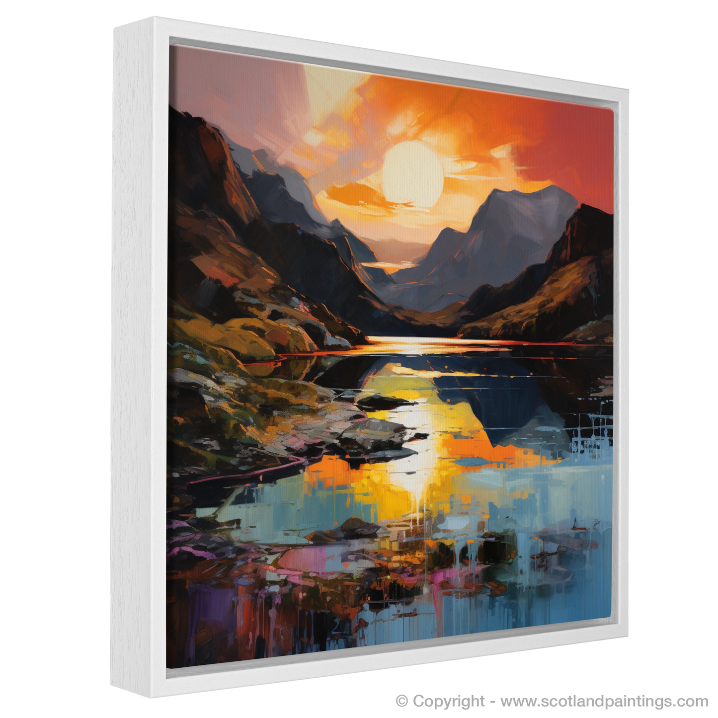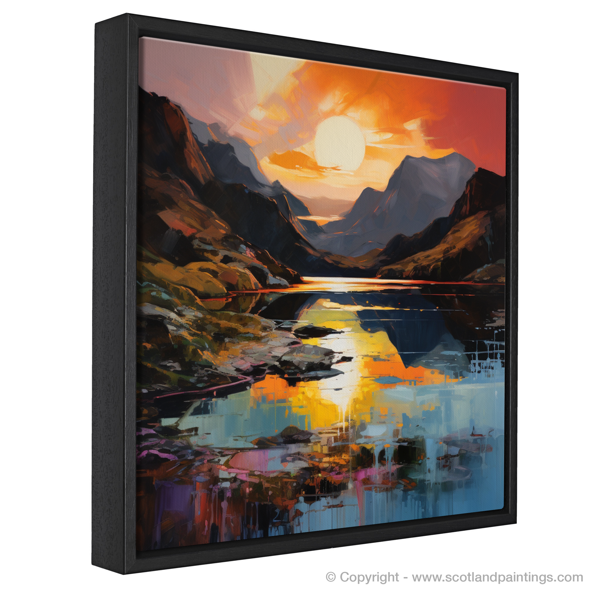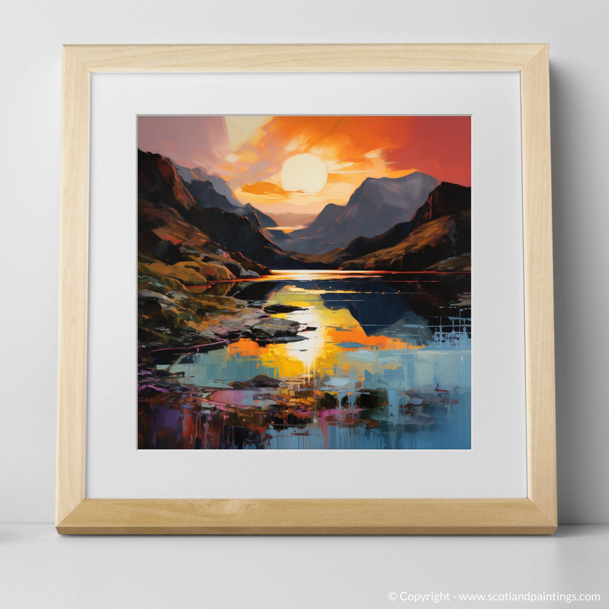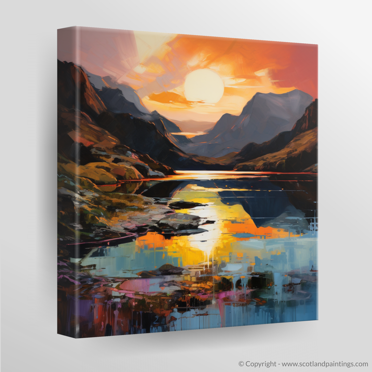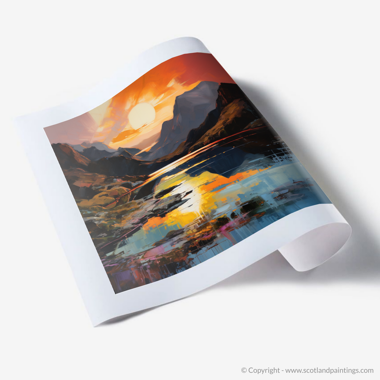 Painting and Art Print of Loch Coruisk at sunset entitled "Sunset Embrace at Loch Coruisk: An Expressionist Tribute".