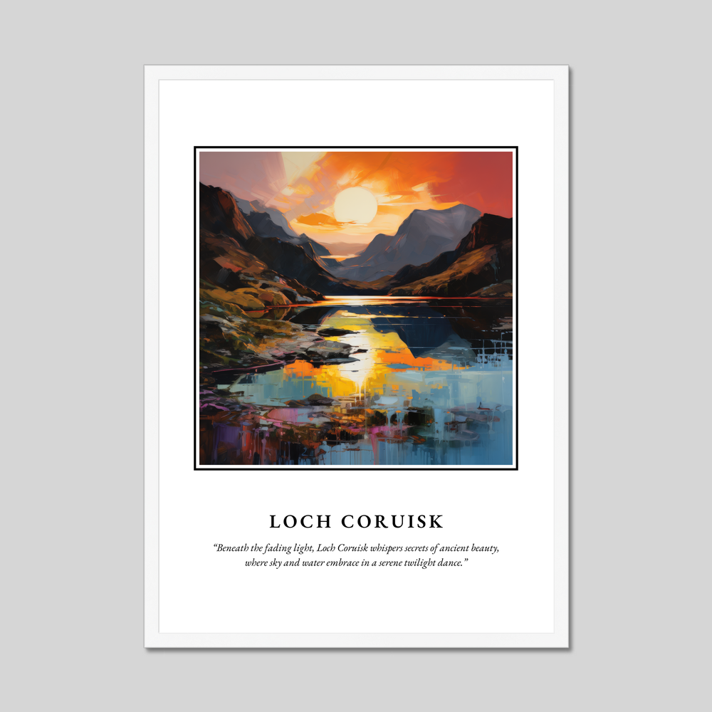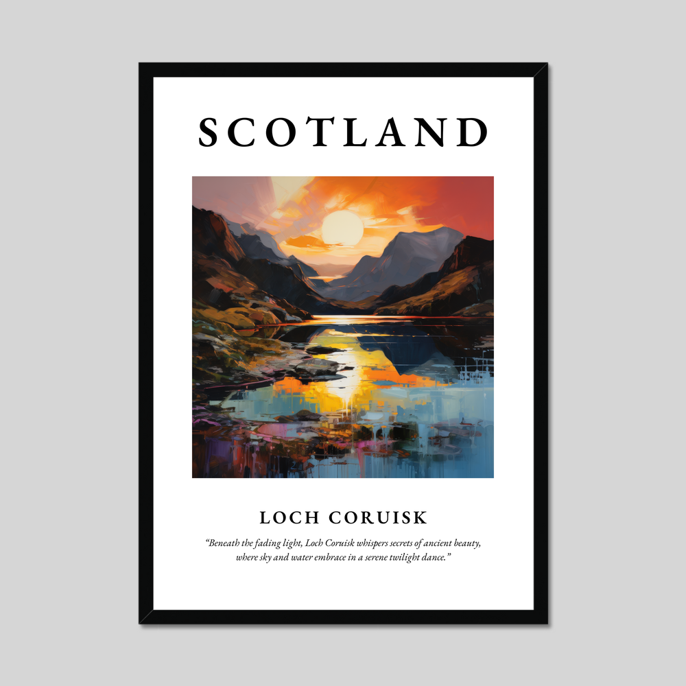 Experience the timeless allure of Loch Coruisk—a place where legends linger and landscapes inspire. This framed poster print not only enlivens your environment but also invites the tranquillity and mystique of Scotland’s natural wonders into your home. Perfect for anyone with an affinity for the majestic and the mysterious, it’s a testament to the enduring beauty of Scotland’s rugged wilderness.