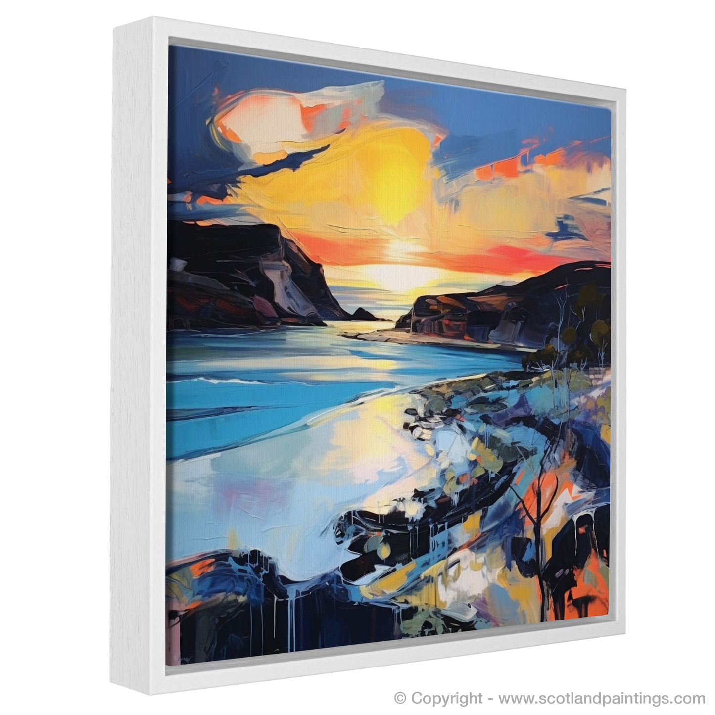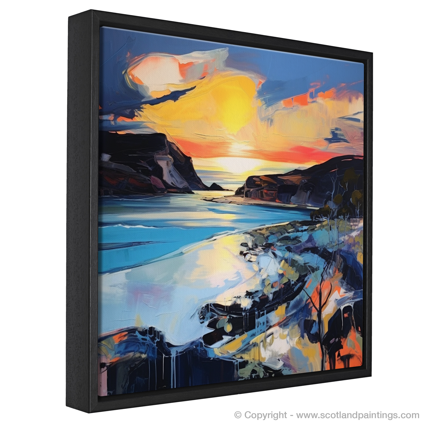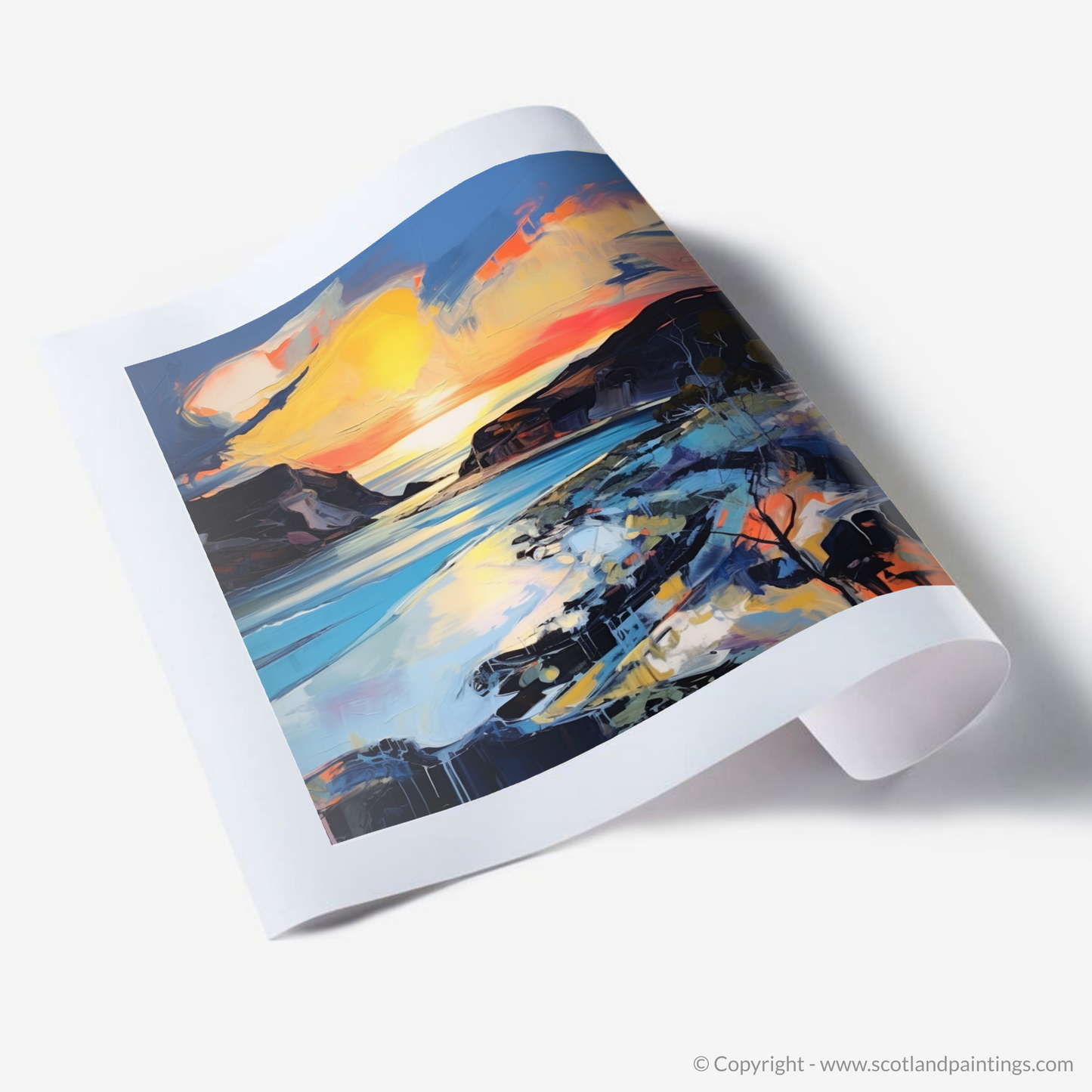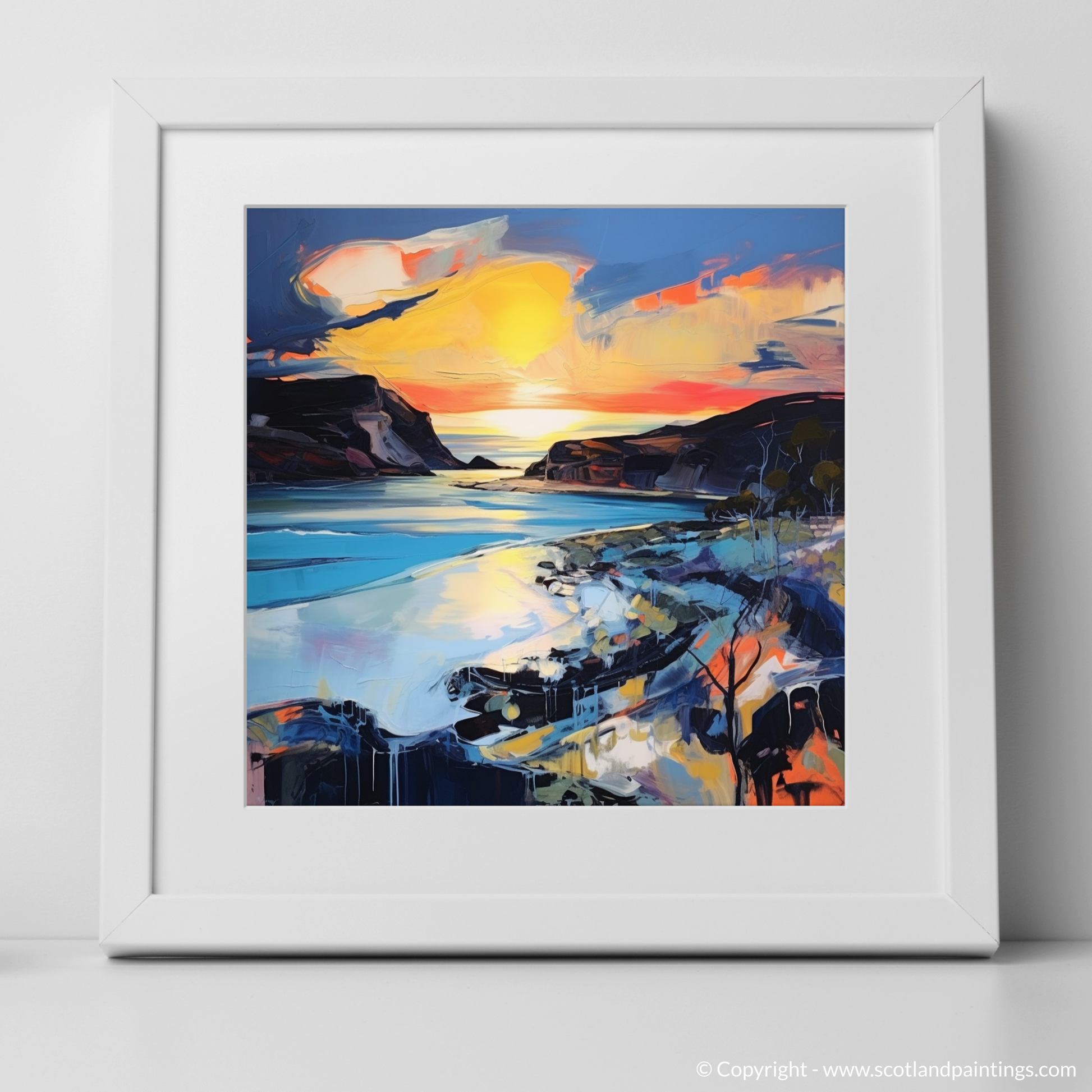 This print is more than a picturesque rendering; it's a sensory journey that entices viewers to lose themselves in the visceral energy of expressionism, while paying homage to the natural beauty of the Scottish shores. It offers a stirring, imaginative escape to one of the most enchanting times of day, in a place where sea and sky converge in a symphony of colour.