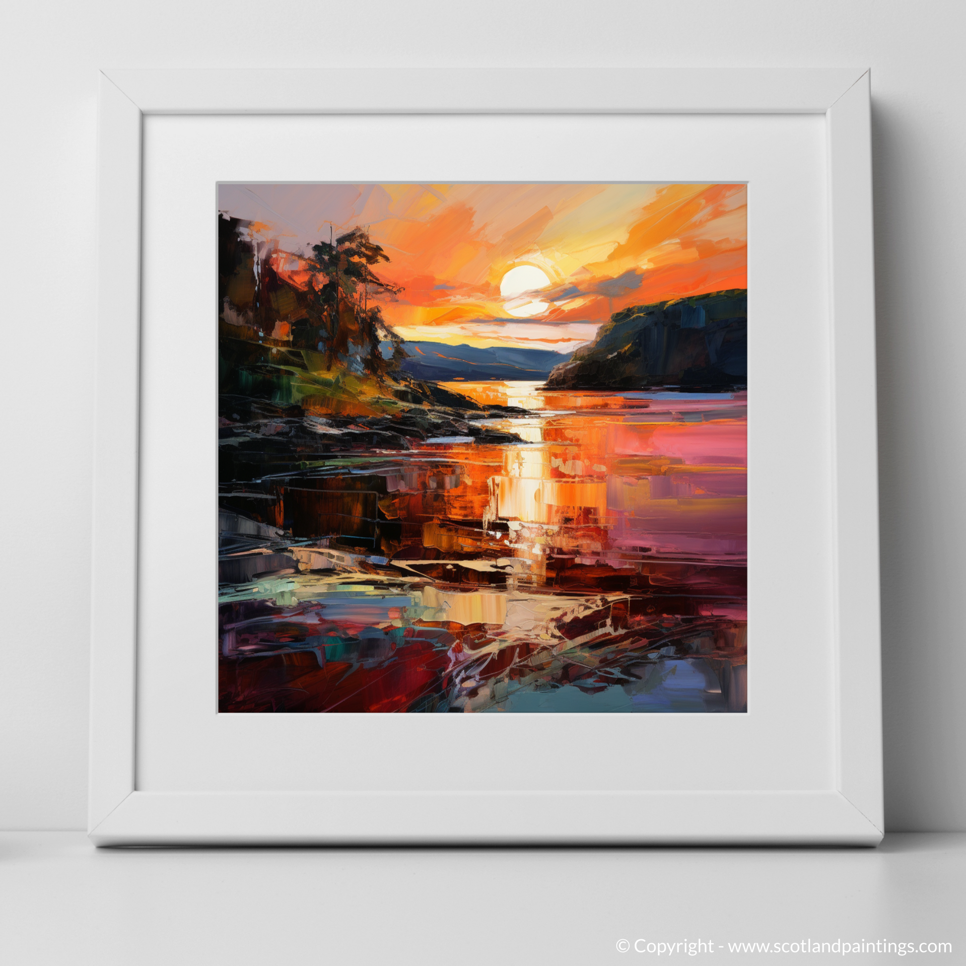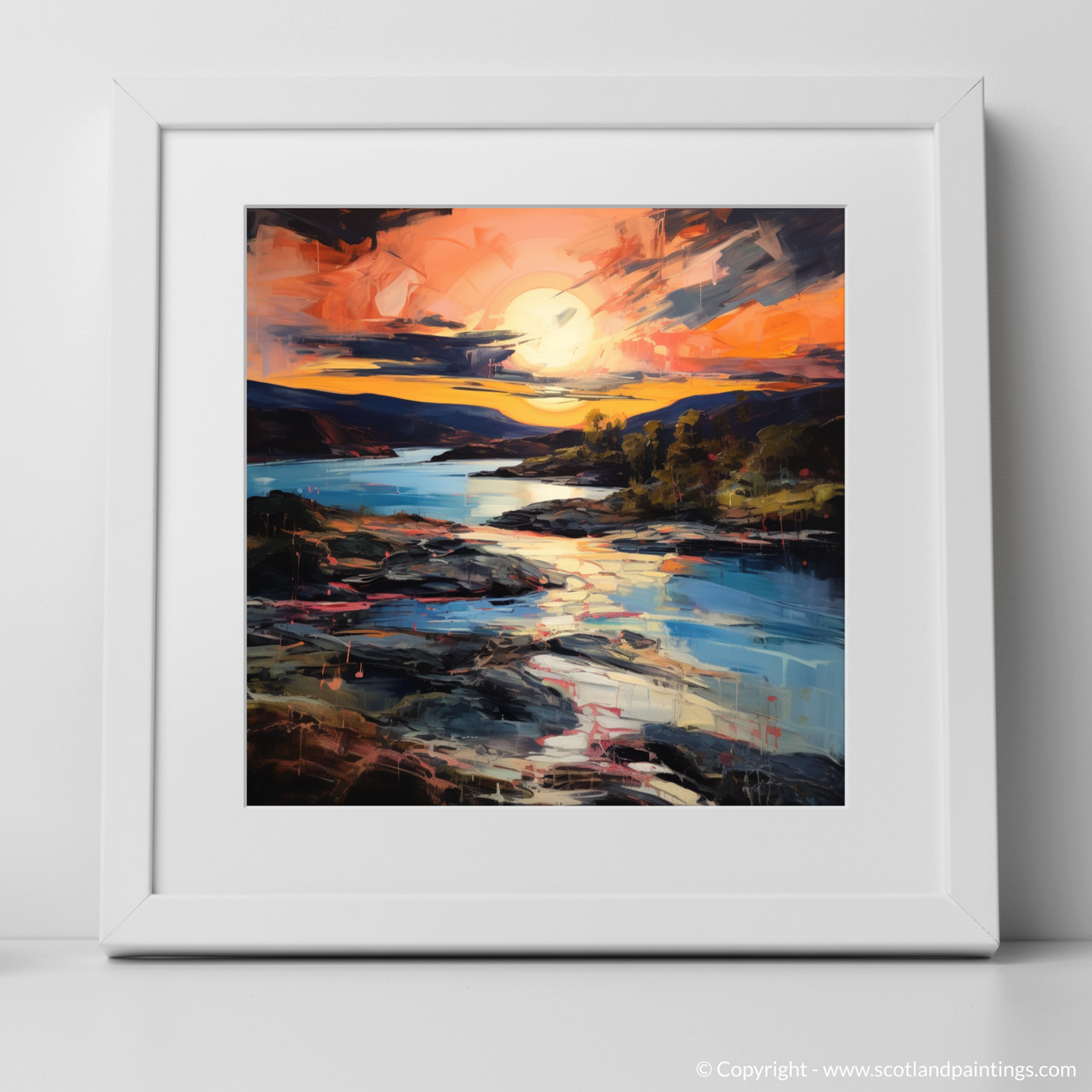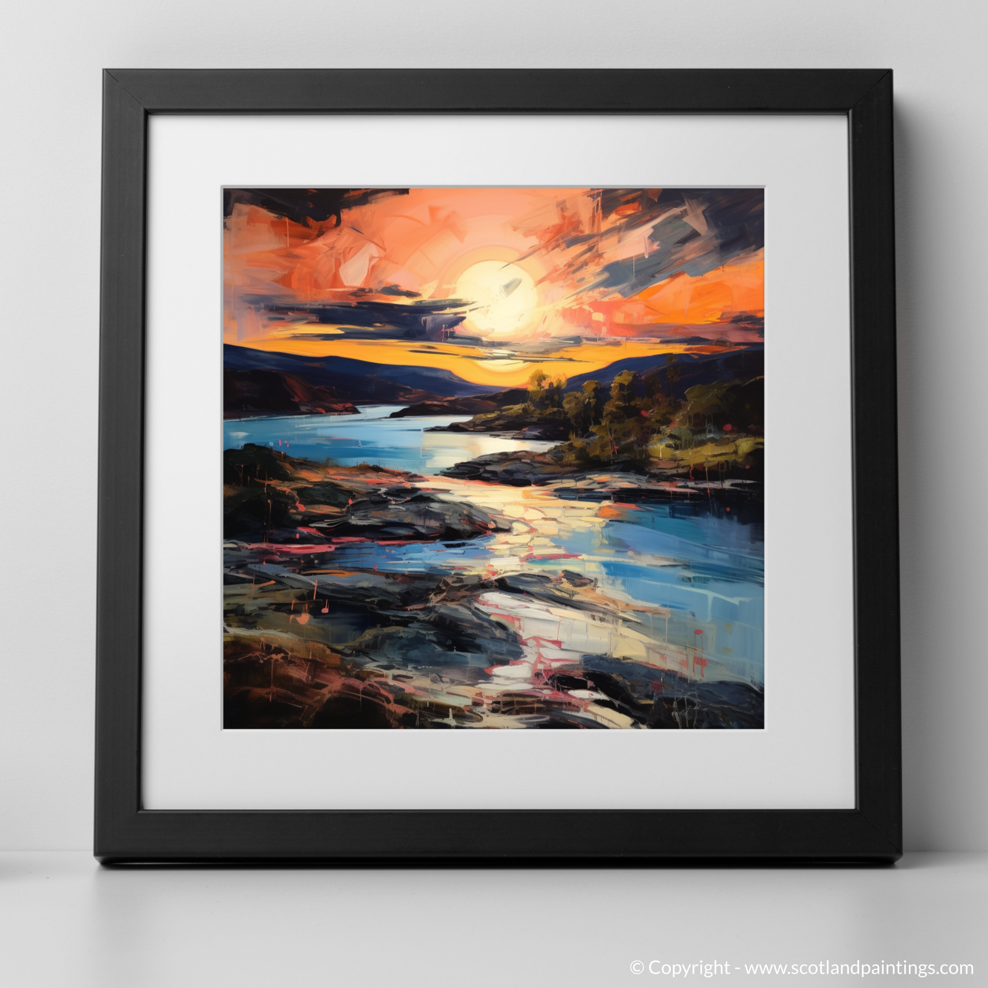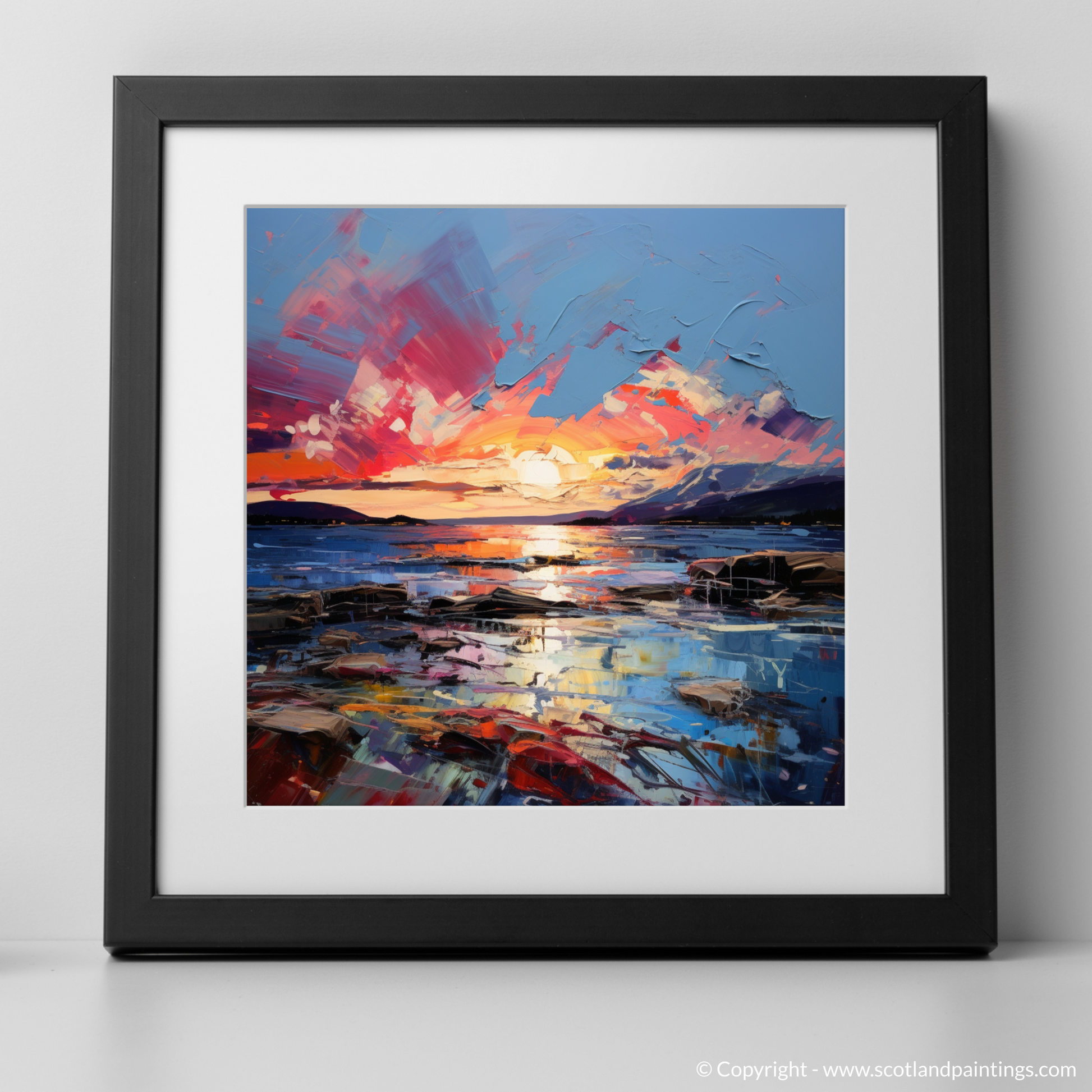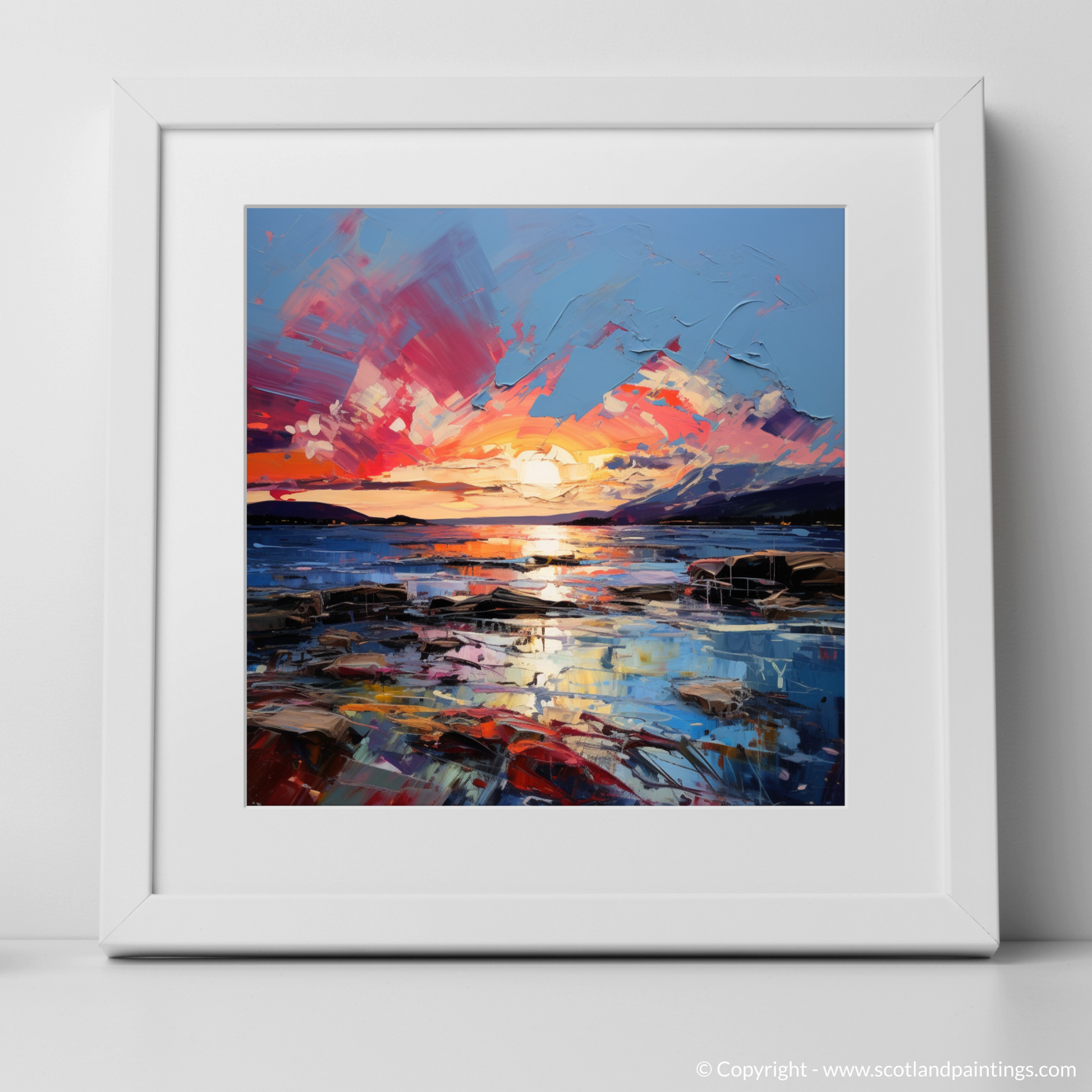 Ardtun Bay, with its breathtaking sunsets, provides the perfect inspiration for these artworks. Known for its serene beauty, the bay offers a stunning palette of colours as the sun dips below the horizon, painting the sky with a dramatic spectrum. This scene, painstakingly captured in our prints, reflects the bay's lush, serene landscapes and ever-changing sky, making it a cherished gem of Scottish nature.