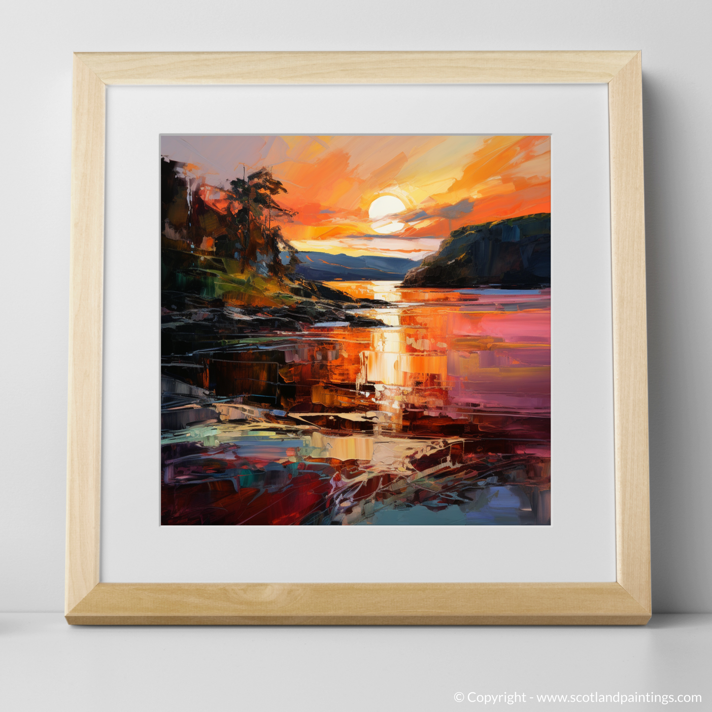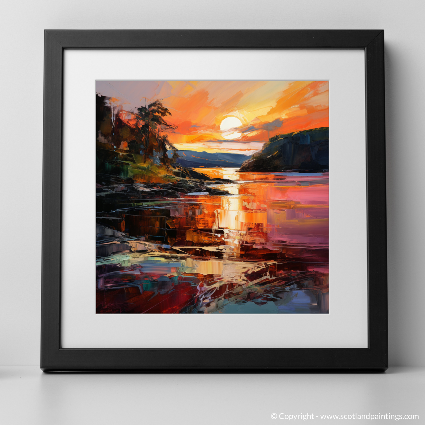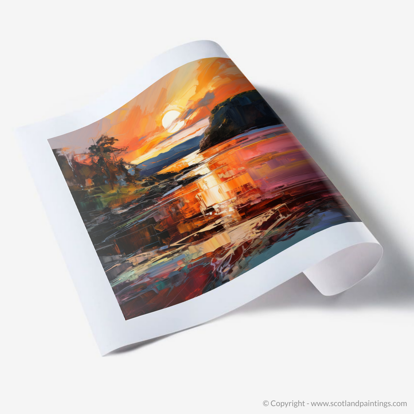 Captured within this evocative print is the raw beauty of Ardtun Bay at the zenith of sunset. This expressionist piece artfully conveys the dynamic skies and tranquil waters, offering a visual feast of vibrant hues and passionate brushstrokes that encapsulate the essence of this Scottish haven.