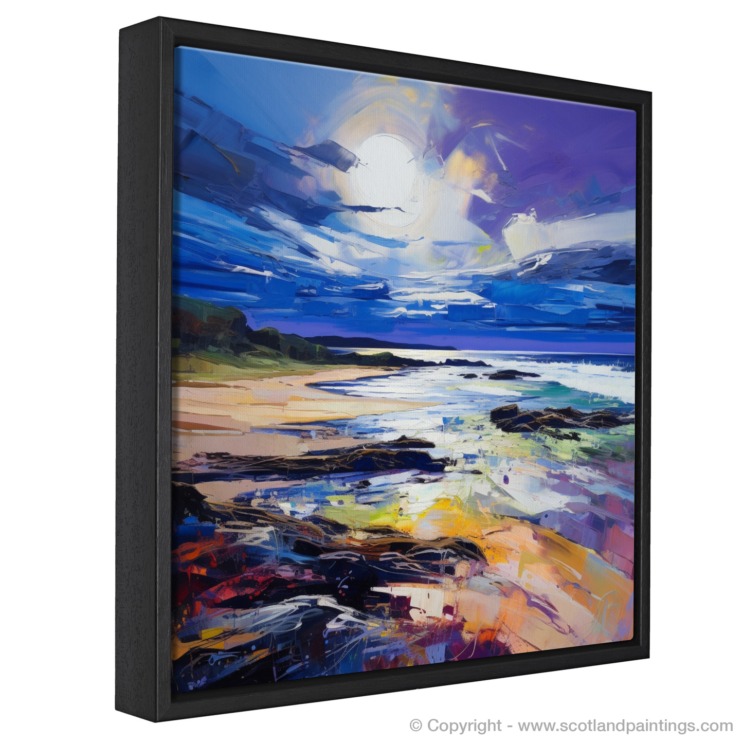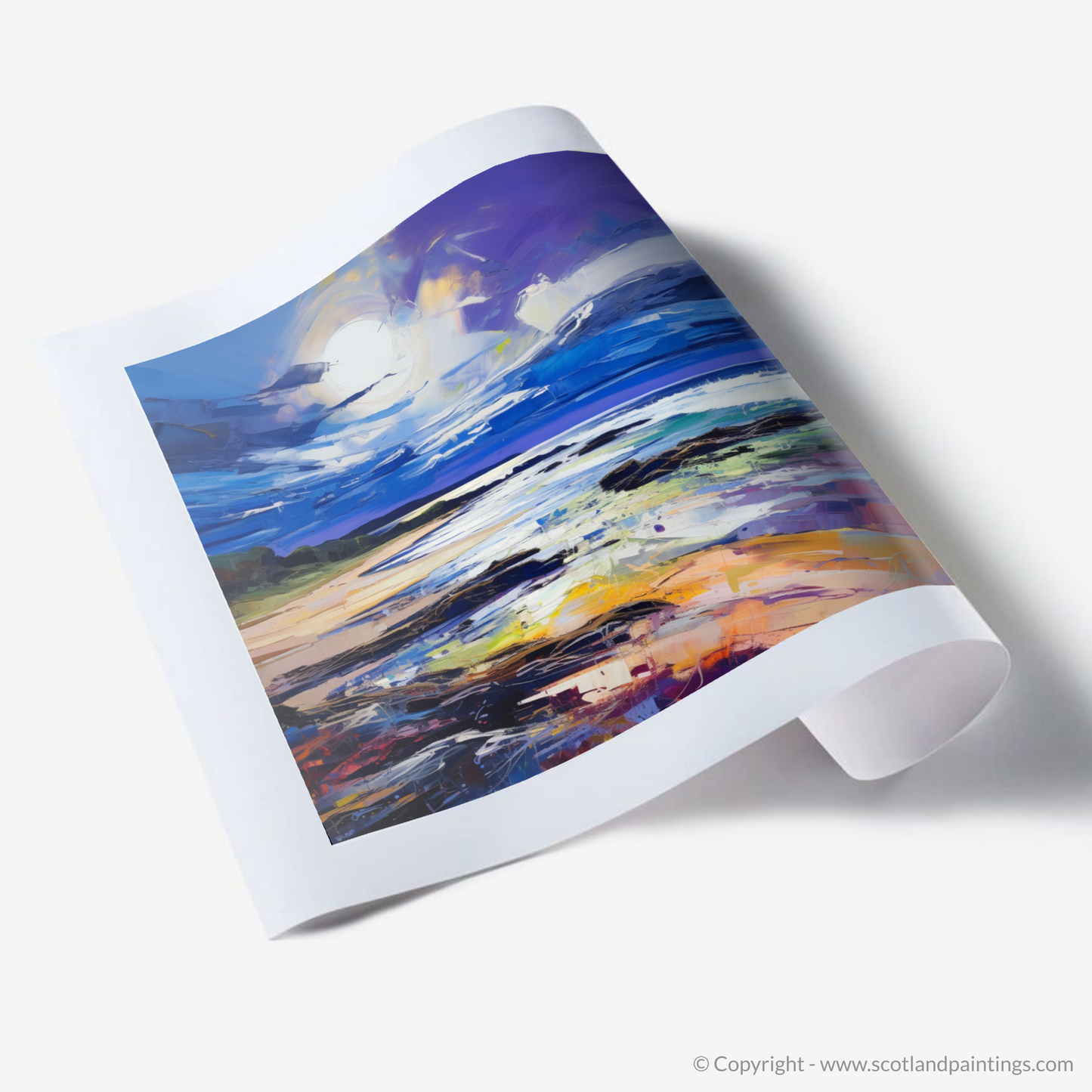 Perfect for those who cherish the rugged allure of Scotland’s beaches, this piece is a celebration of nature's artistry, rendered with a passion and intensity that only expressionism can convey. It is a feast for the eyes that will invigorate any space with its dynamic depiction of one of Scotland's most beautiful coastal landscapes.