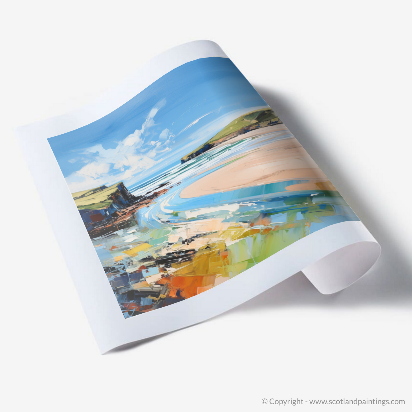 This print, hailing from our 'Scottish Beaches' collection, embodies the untamed beauty of Scotland's shores. It's a sweeping artistic tribute to the natural splendour of one of Scotland's most breathtaking coastal retreats, offering a poignant and timeless statement for any space.