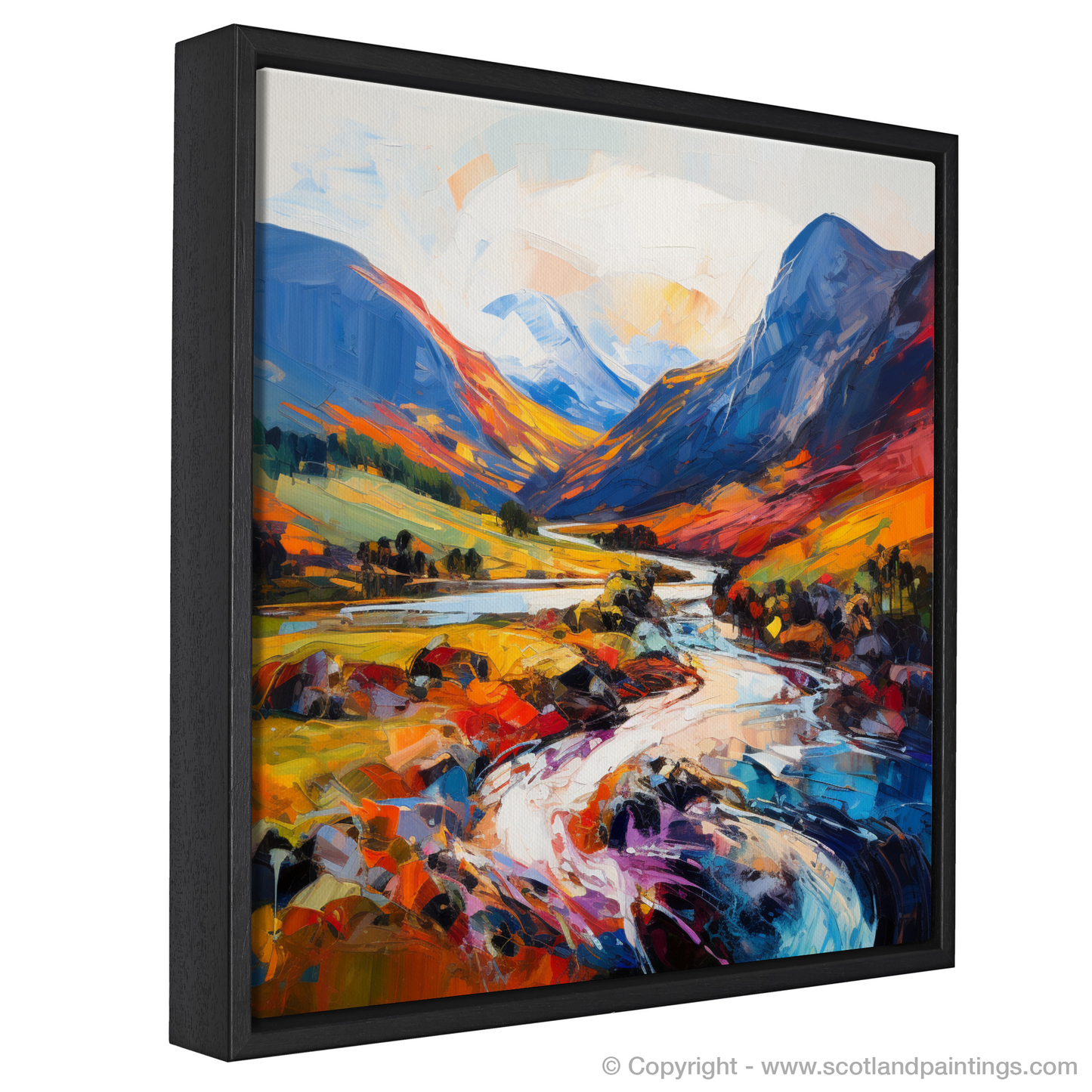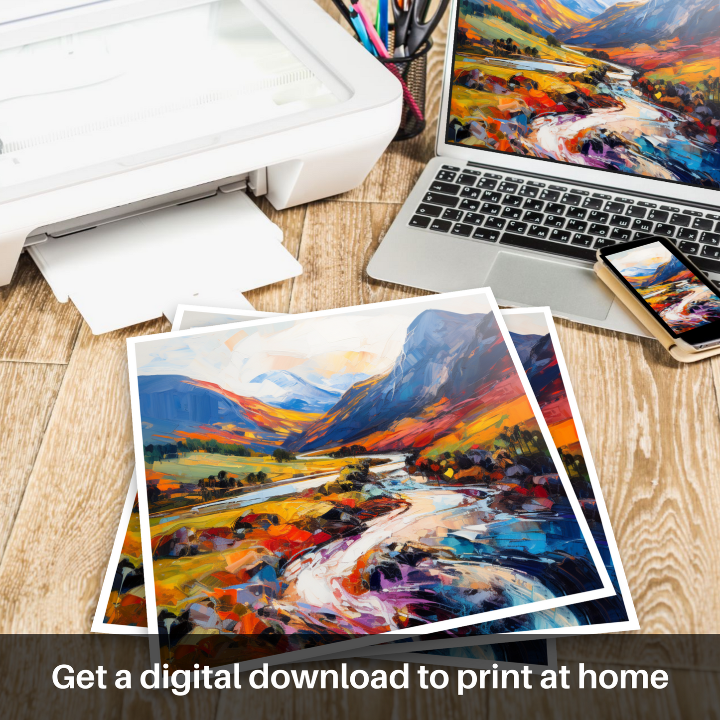 Experience the untamed beauty of the Scottish Highlands with this captivating print inspired by Glen Nevis. The expressive brushstrokes bring to life a vibrant tapestry of colour that ebbs and flows across the canvas, encapsulating the essence of the wild landscape.