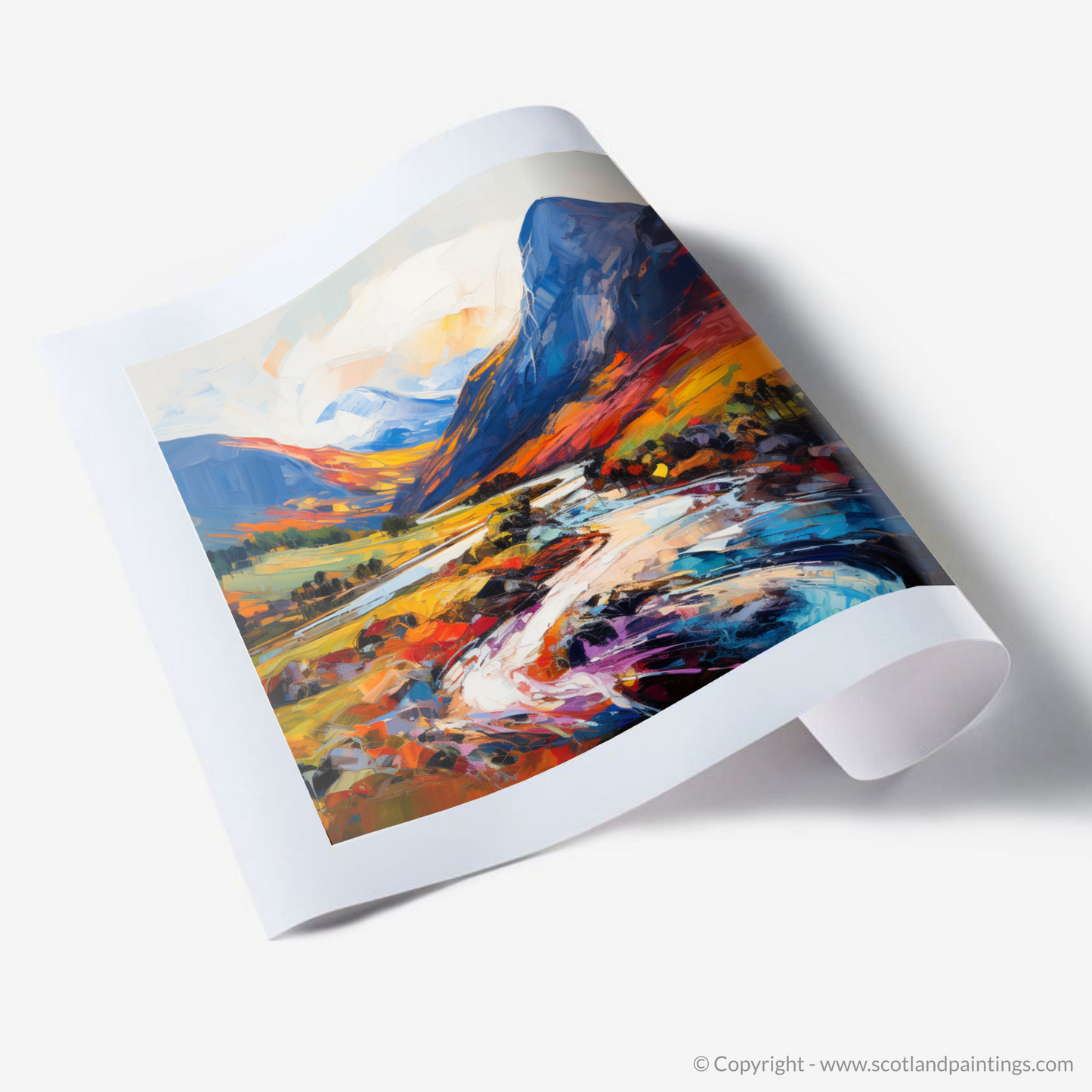 This print is a celebration of the Highlands' raw elegance and is certain to ignite the imagination and transport its admirer to the heart of Scotland’s natural splendour. It stands as a daring interpretation of one of the country's most iconic landscapes, perfect for anyone wishing to bring the spirit of the Highlands into their home.