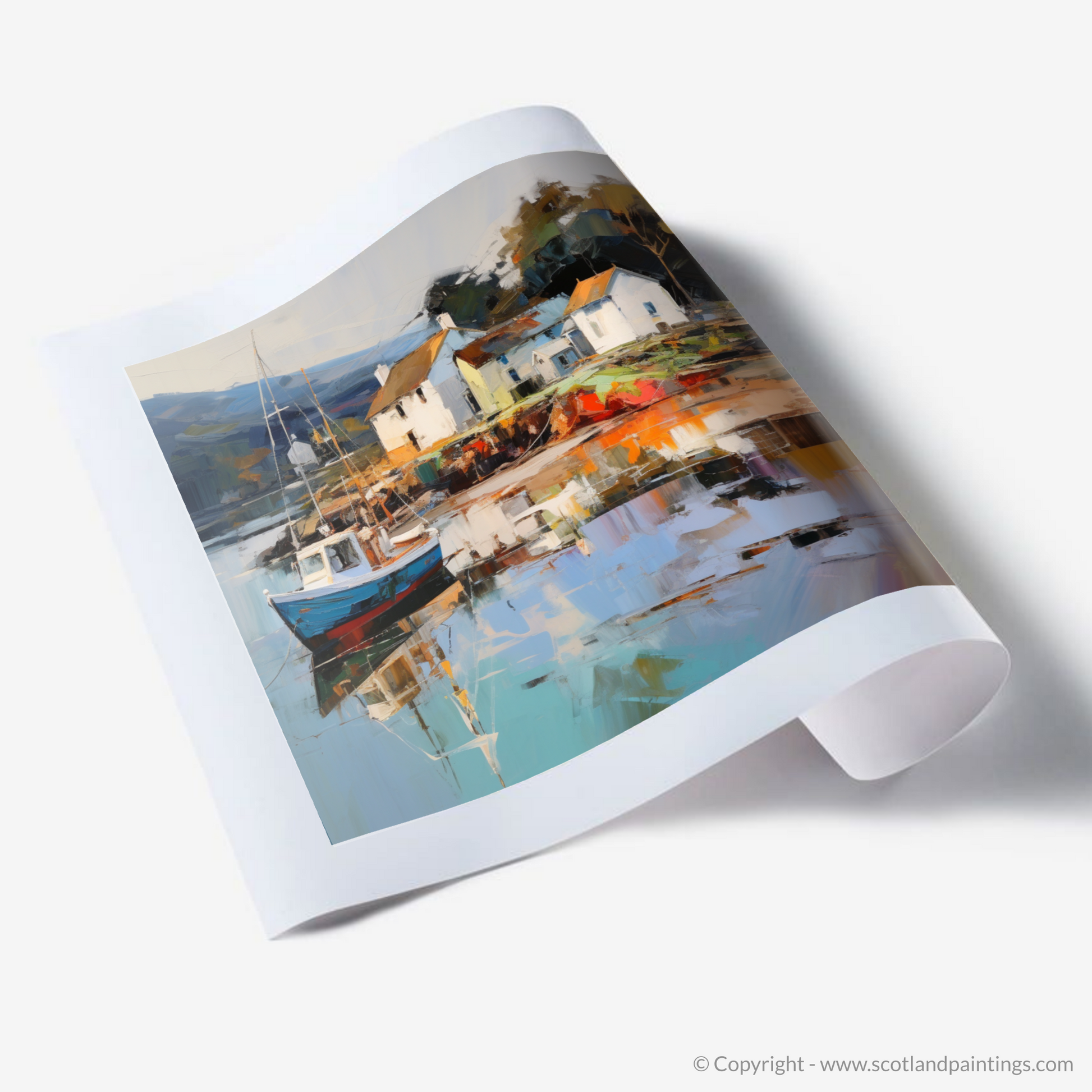 Capturing the tranquil charm of Tayvallich Harbour in Argyll, this evocative print from our 'Scottish Harbours' collection is infused with the passionate spirit of Expressionism. The canvas pulsates with dynamic brushstrokes, laying down a tapestry of colours that dance across the harbour view.