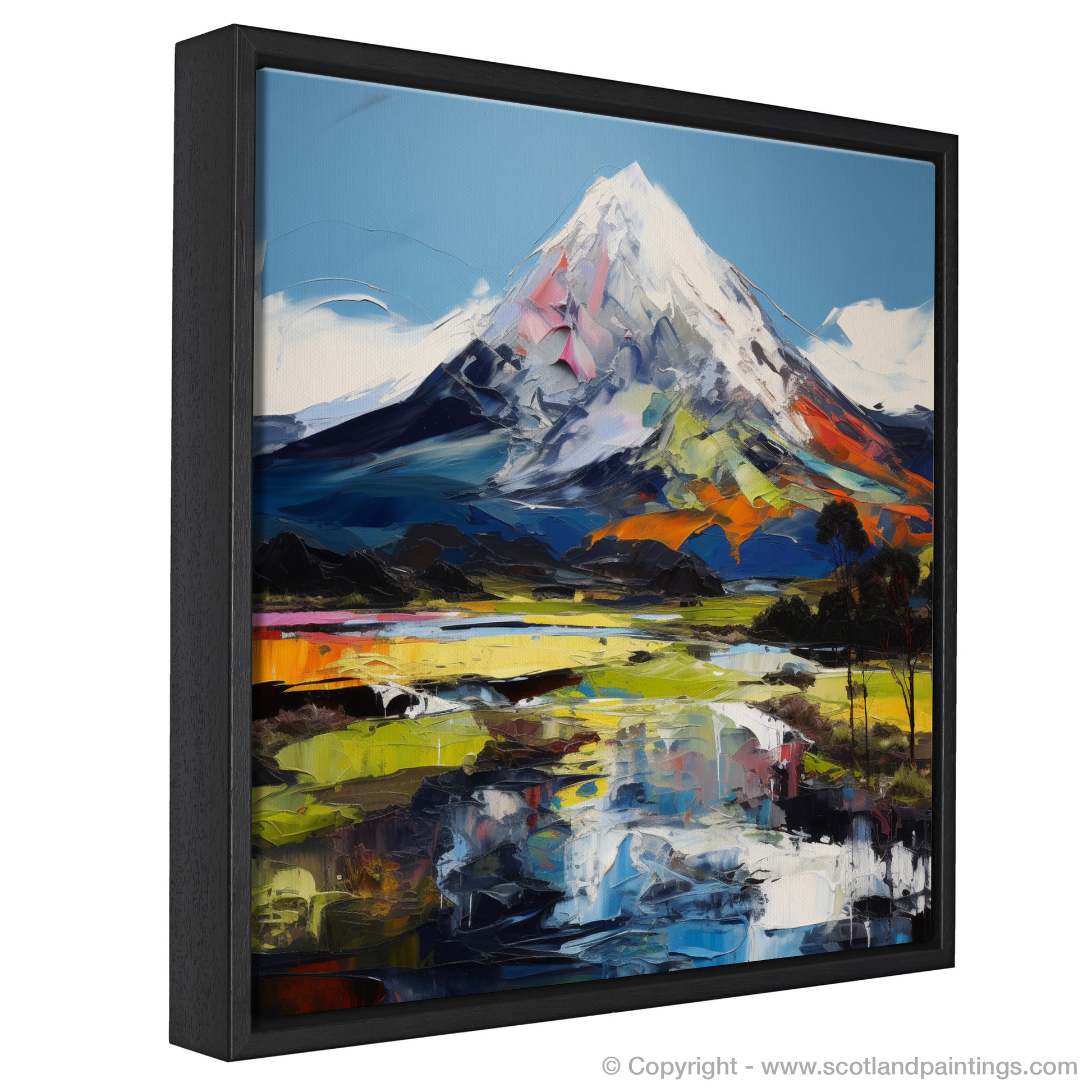 Captivate your senses with this vivid interpretation of Schiehallion, one of Scotland's most majestic munros. This expressive piece showcases a dynamic palette of colours that baptises the canvas with the very essence of emotion and nature's unpredictable beauty. Bold brushstrokes in shades of fiery orange, crimson and amber are juxtaposed with the cooler tones of azure, emerald and sapphire, conjuring a landscape alive with contrast and passion.