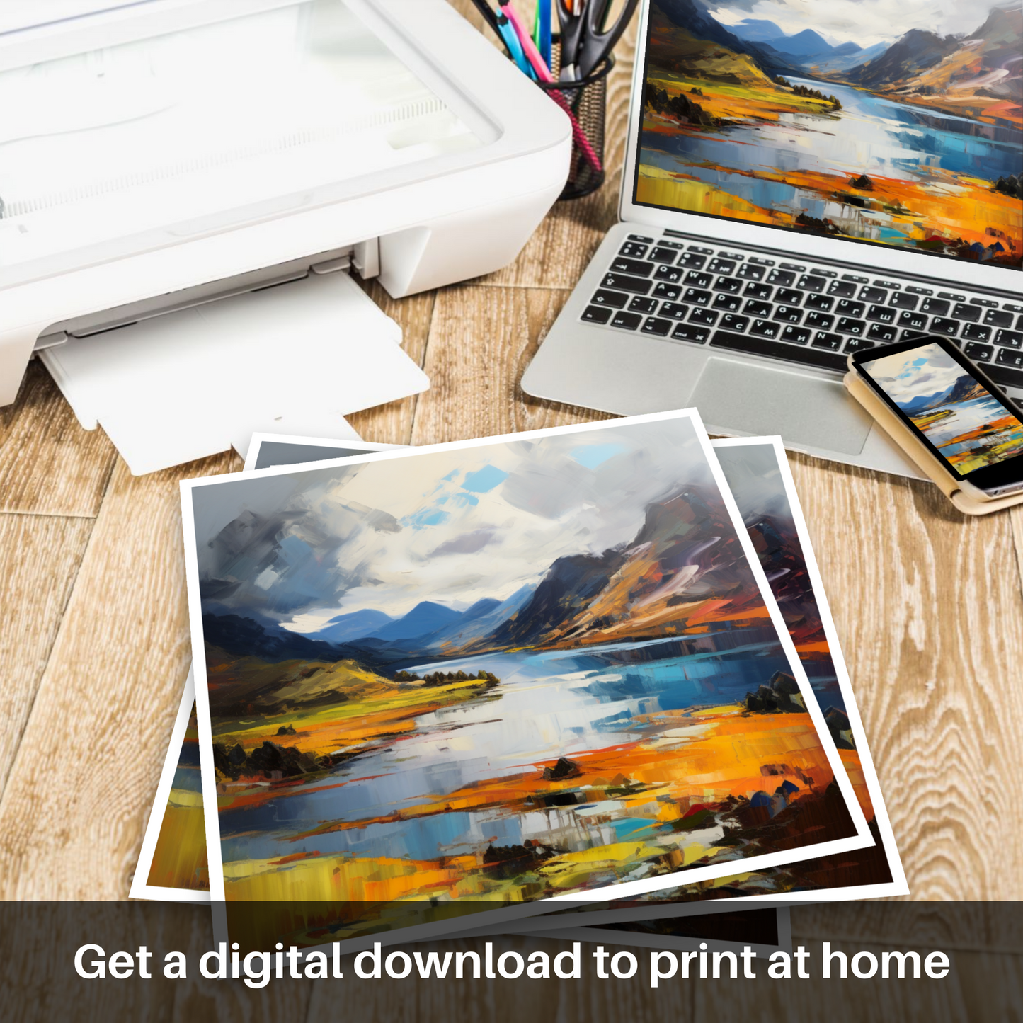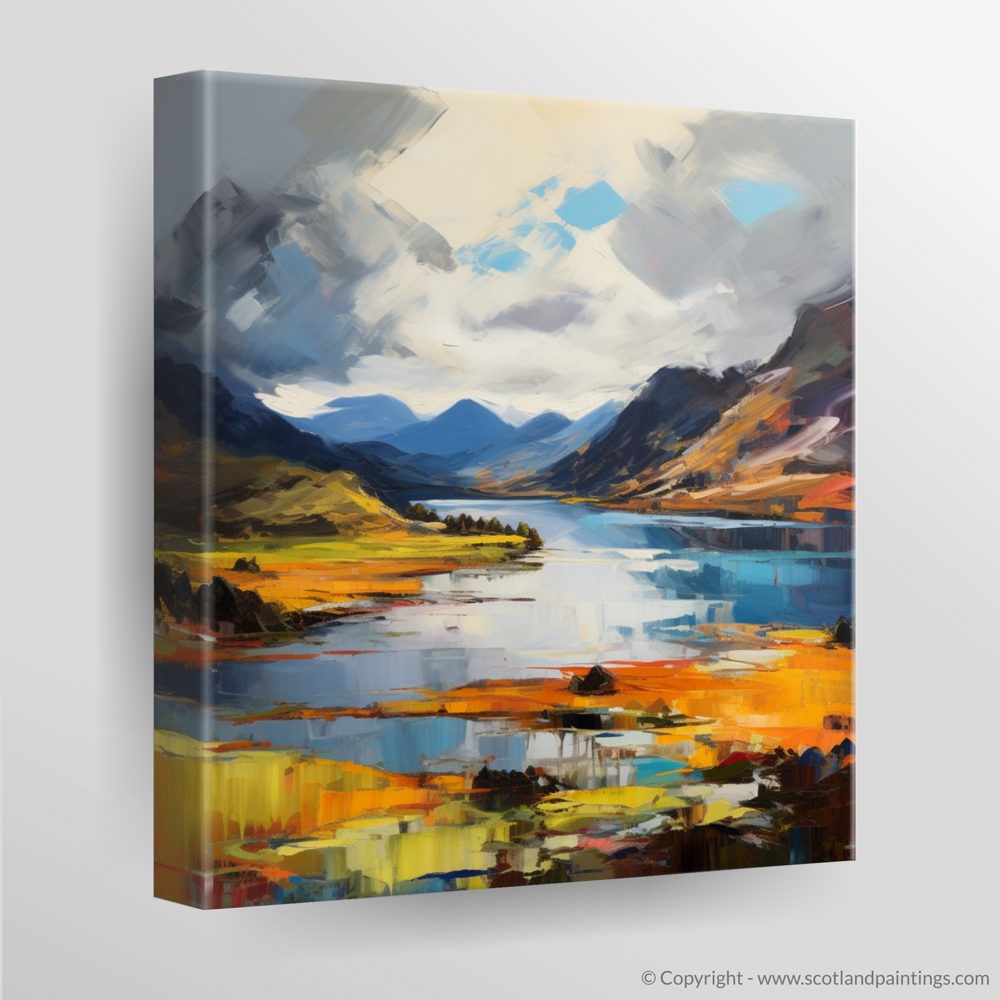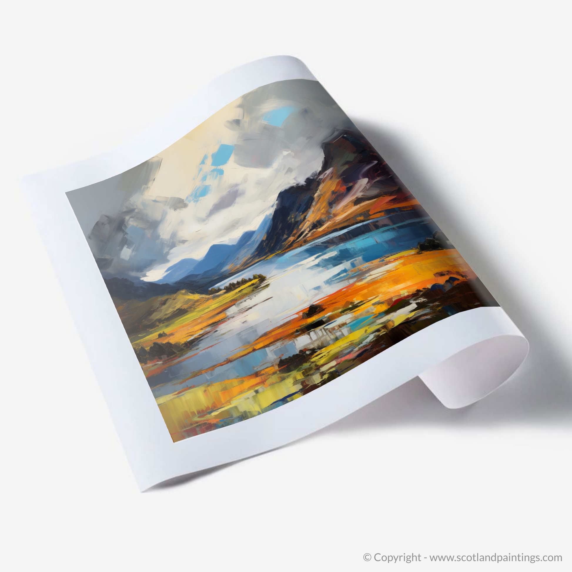 This piece is not just a visual journey; it is an emotional sojourn to one of Scotland's most iconic vistas, conveyed through the passionate lens of Expressionist art. It is an invitation to let one's imagination roam freely across the highland canvas and find solace in the storm of colour and form.
