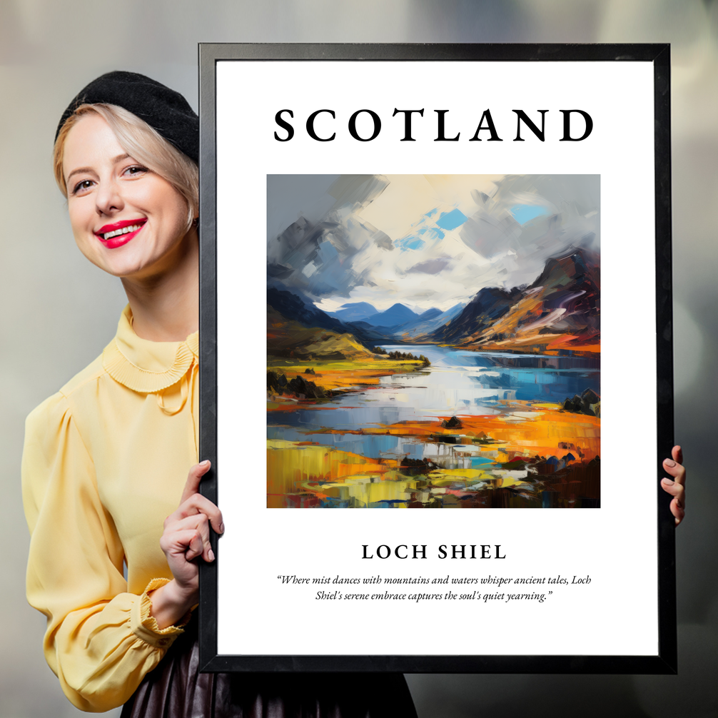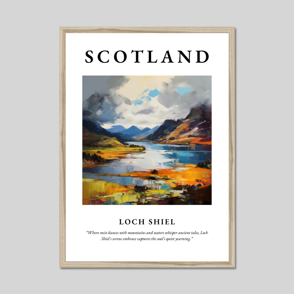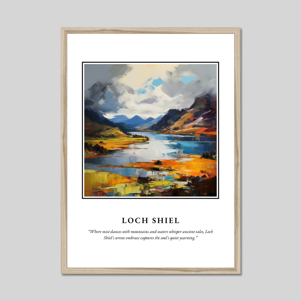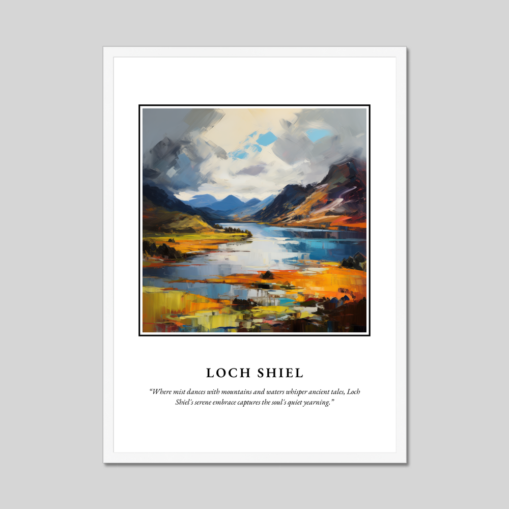 Immerse yourself in the captivating landscape of Scotland with our stunning Expressionism-style framed poster print of Loch Shiel. Measuring an impressive 50cm x 70cm, this large artwork transforms any space with its alluring portrayal of Scotland's enchanting beauty, ideal for art enthusiasts or those with a fond connection to this magical place.